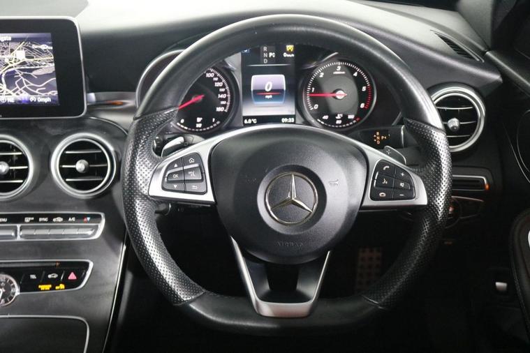 This well maintained Mercedes C250D AMG Line Premium finished in Black looks fantastic complemented by 19 inch Titanium Grey Alloy Wheels, AMG Body Styling, LED Headlights and Rear Privacy Glass. Find your way with integrated SATELLITE NAVIGATION with 7 inch LCD Display. Well equipped with OPENING GLASS PANORAMIC SUNROOF with Electric Blind. Sit in luxury with full CRANBERRY RED LEATHER with HEATED / ELECTRIC / AMG Front Seats. Park in ease with FRONT & REAR PARKING SENSORS with REVERSE CAMERA. Keep connected with BLUETOOTH Phone System with USB port. Listen to your music through DAB Digital Radio. Comfortable to drive with Dual-Zone CLIMATE CONTROLLED AIR CONDITIONING and CRUISE CONTROL with Speed Limiting Function. Safe to journey with Attention Assist and Collision Prevention Assist. Well equipped with Power-Operated Tailgate, Auto Lights and Rain-Activated Wipers. Also fitted with ISOFIX seats, Dynamic Select, Multifunctional Flat Bottomed Steering Wheel, Alarm and Remote Door Locking with 2 x keys. Buy in confidence with JUST 1 OWNER and SERVICE HISTORY with 9 x Documented Services.