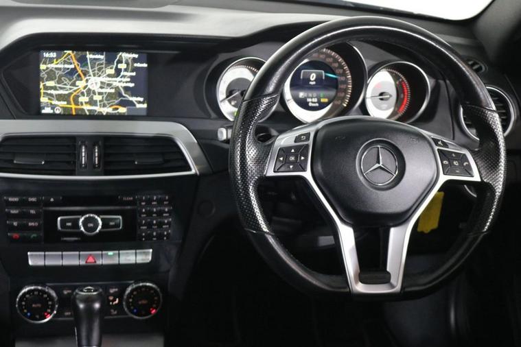 This well maintained Automatic Mercedes C220 CDI AMG Sport finished in Obsidian Black looks fantastic complemented by 18 inch Alloy Wheels, LED Running Lights and AMG Body Styling. Find your way with integrated SATELLITE NAVIGATION. Park in ease with REVERSE CAMERA and FRONT & REAR PARKING SENSORS. Sit in luxury with 1/2 LEATHER Upholstery with HEATED FRONT SEATS. Keep connected with BLUETOOTH Phone System. Listen to your music through DAB Digital Radio. Comfortable to drive with Dual-Zone CLIMATE CONTROLLED AIR CONDITIONING and CRUISE CONTROL. Safe to journey with Attention Assist and Brake Assist. Also fitted with Auto XENON Headlights, Power-Fold Door Mirrors, ISOFIX seats, Multifunctional Steering Wheel, Alarm and Remote Door Locking with 2 x keys. Buy in confidence with SERVICE HISTORY with 8 x Documented Services.