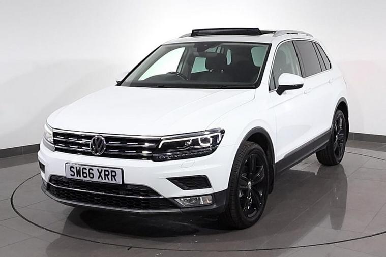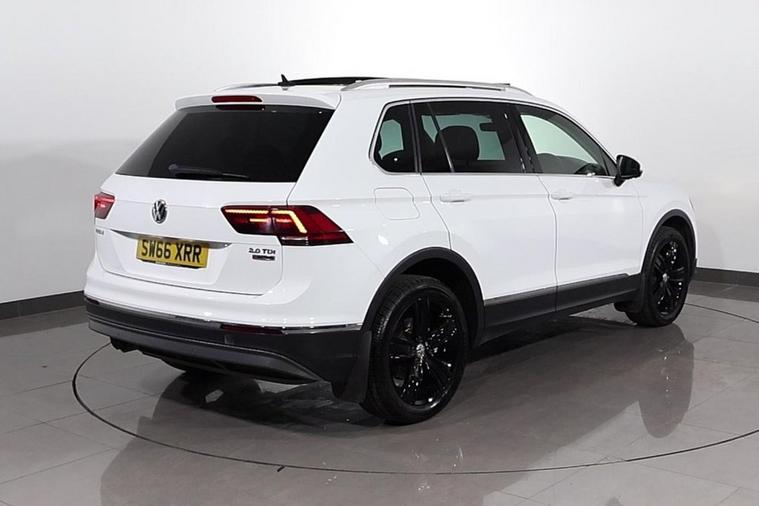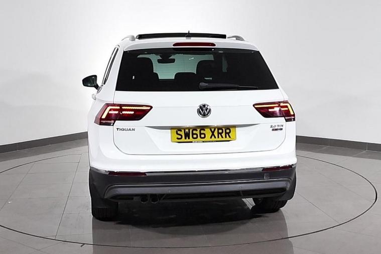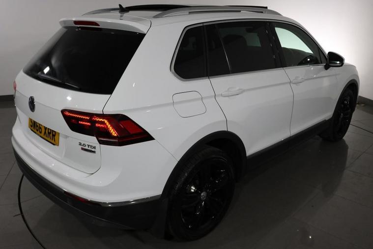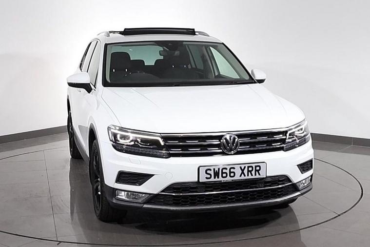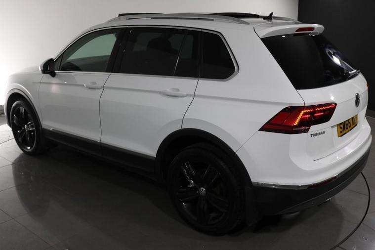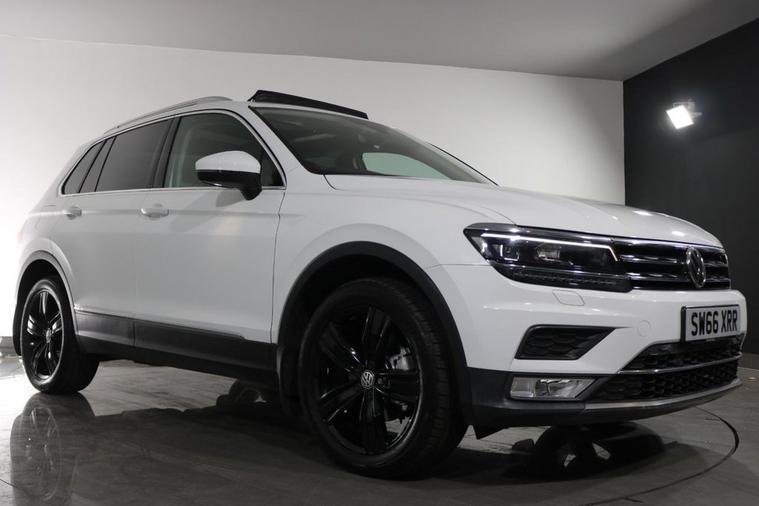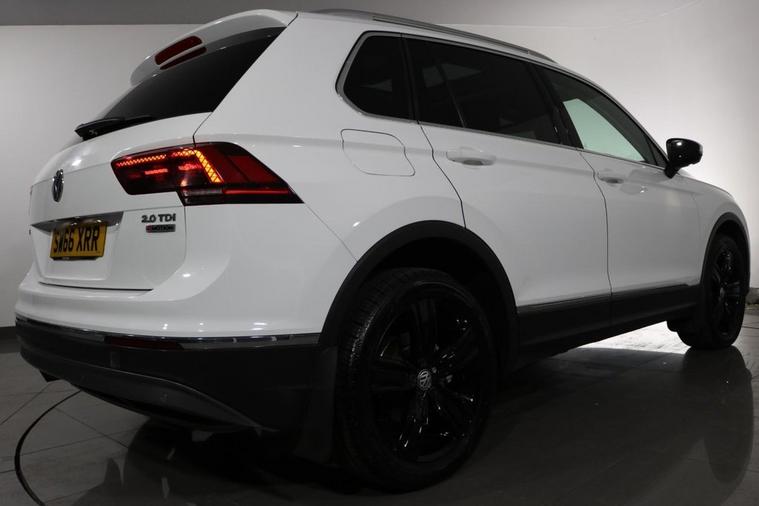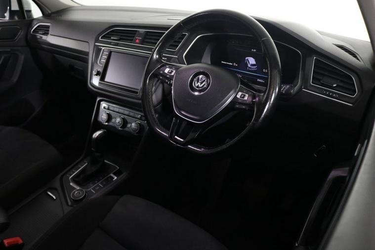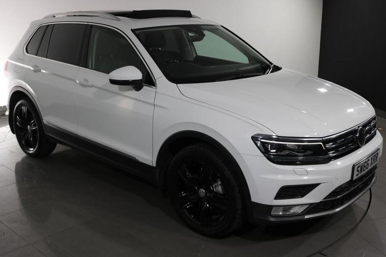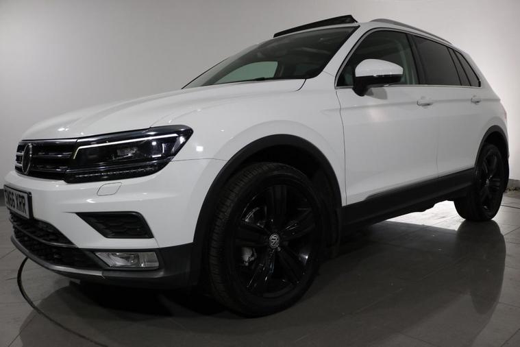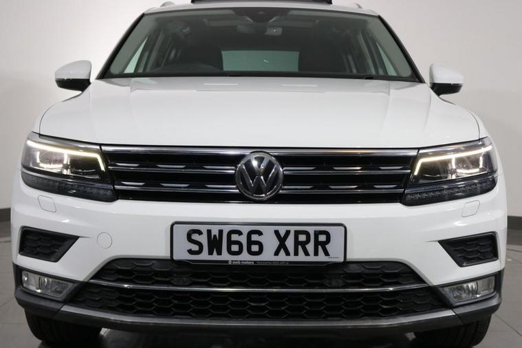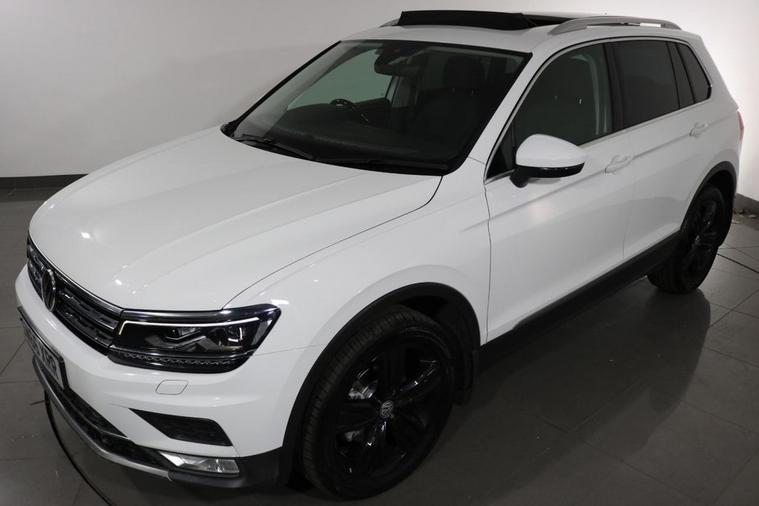 This desirable Automatic Volkswagen Tiguan Tech SEL 4Motion finished in Pure White looks fantastic complemented by 19 inch Alloy Wheels, LED Running Lights and Rear Privacy Glass. Sit in luxury with PANORAMIC GLASS SUNROOF and HEATED FRONT SEATS. Find your way with integrated SATELLITE NAVIGATION with TOUCHSCREEN Display. Park in ease with FRONT & REAR PARKING SENSORS. Keep connected with BLUETOOTH Phone System. Listen to your music through DAB Digital Radio. Comfortable to drive with Auto CLIMATE CONTROLLED AIR CONDITIONING and ADAPTIVE CRUISE CONTROL. Safe to journey with Lane Assist, Fatigue Assist and Front Assist with Emergency Braking. Well equipped with Power-Fold Door Mirrors, Driver Profile Selection, ISOFIX seats, Multifunctional Steering Wheel, Immobiliser, Alarm and Remote Door Locking with 2 x keys. Buy in confidence with SERVICE HISTORY with 5 x Documented Services.