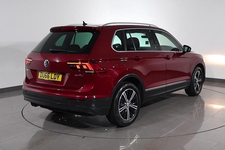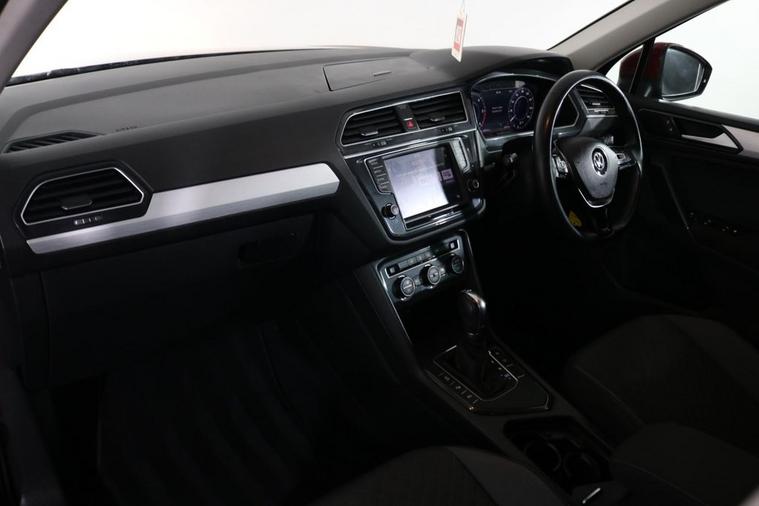 This well maintained AUTOMATIC Volkswagen Tiguan Tech SE finished in Ruby red looks fantastic complemented by 18 inch Alloy Wheels and Rear Privacy Glass. Keep connected to your Phones APPS including SATELLITE NAVIGATION through APPLE CARPLAY, ANDROID AUTO and MIRROR LINK with TOUCHSCREEN Display. Park in ease with REVERSE CAMERA and FRONT & REAR PARKING SENSORS. Well equipped with DIGITAL DASHBOARD. Listen to your music through DAB Digital Radio. Keep connected with BLUETOOTH Phone System. Comfortable to drive with CLIMATE CONTROLLED AIR CONDITIONING and CRUISE CONTROL with Speed Limiting Function. Well equipped with Electric Operated Tailgate, Auto Headlights and Power-Fold Door Mirrors. Safe to journey with Lane Assist, Fatigue Detection and Front Assist with Emergency Braking. Also fitted with ISOFIX seats, Multifunctional Steering Wheel, Immobiliser, Alarm and Remote Door Locking with 2 x keys. Buy in confidence with 3 Owners from new and SERVICE HISTORY with 9 x Documented Services.