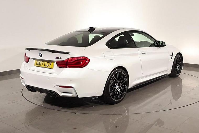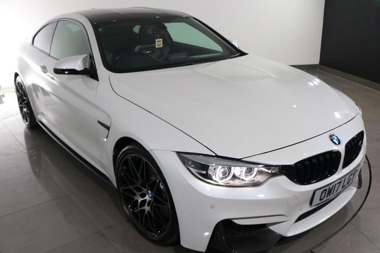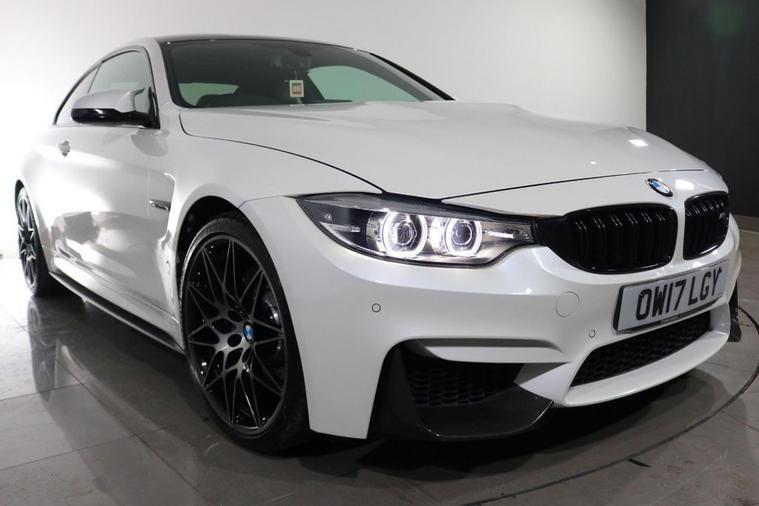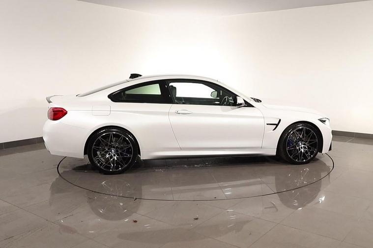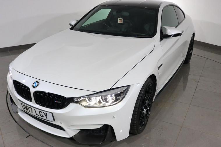 ** PLEASE NOTE: THIS CAR IS VIEW BY APPOINTMENT ONLY** This desirable BMW M4 Competition finished in Mineral White looks fantastic complemented by 20 inch Forged Style 666M Alloy Wheels, Carbon Exterior Parts, LED Headlights, Rear Privacy Glass and Carbon Fibre Roof and Rear Spoiler. Find your way with integrated PROFESSIONAL SATELLITE NAVIGATION with Large LCD Display. Keep connected to your Phones APPS through APPLE CARPLAY. Sit in luxury with HEATED LIGHTWEIGHT M SPORTS SEATS with FULL MERINO LEATHER Upholstery and CARBON Interior Trim. Well equipped with HEATED STEERING WHEEL and HEAD-UP DISPLAY. Keep connected with ENHANCED BLUETOOTH Phone System with WIRELESS CHARGING. Listen to your music through DAB Digital Radio with HARMAN KARDON Sound System. Park in ease with FRONT & REAR PARKING SENSORS. Comfortable to drive with Dual-Zone CLIMATE CONTROLLED AIR CONDITIONING and CRUISE CONTROL. Well equipped with Rain-Activated Wipers and Auto Headlights with High-Beam Assist. Also fitted with Multifunctional M Steering Wheel, Electric Rear Sun Blind, Alarm and Remote Door Locking with 2 x keys.