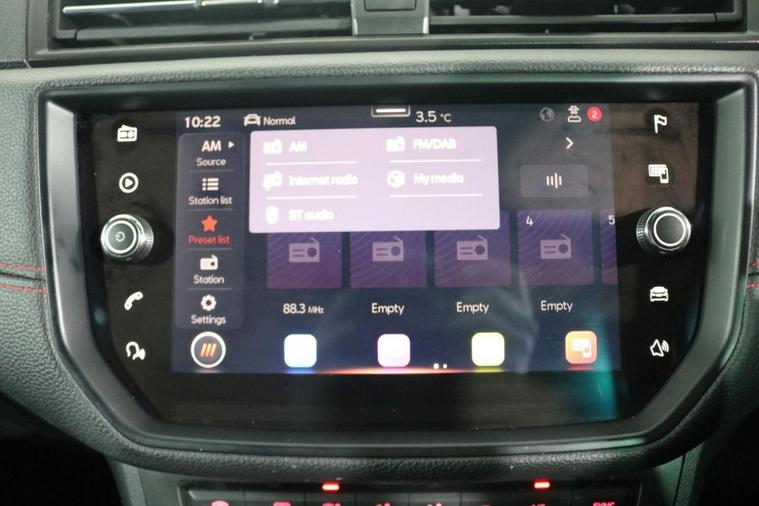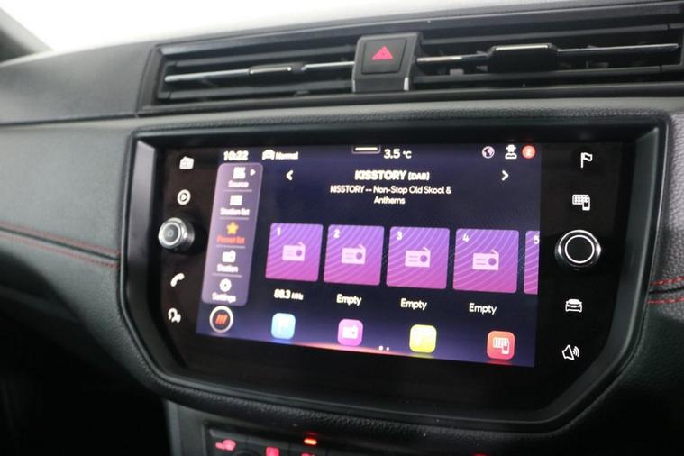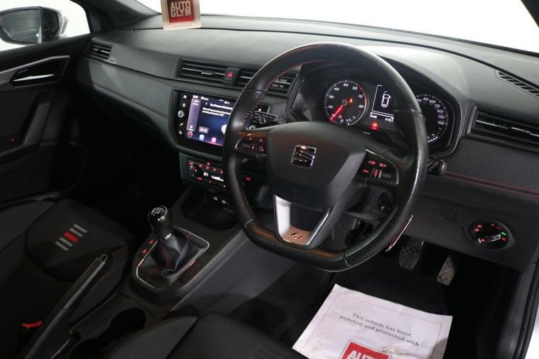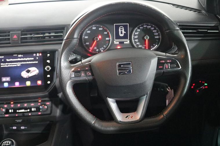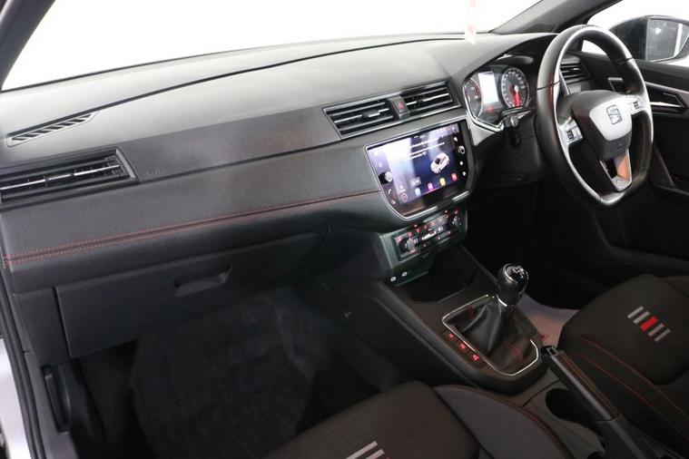 This desirable Seat Ibiza FR finished in Urban Silver looks fantastic complemented by 17 inch Alloy Wheels, Rear Privacy Glass, FR Body Styling and LED Headlights. Find your way with integrated SATELLITE NAVIGATION with 8 inch TOUCHSCREEN Display. Keep connected to your Phones APPS through APPLE CARPLAY, ANDROID AUTO and MIRROR LINK. Listen to your music through DAB Digital Radio. Park in ease with REAR PARKING SENSORS. Keep connected to your phone through BLUETOOTH Phone System. Comfortable to drive with Dual-Zone CLIMATE CONTROLLED AIR CONDITIONING and CRUISE CONTROL with Speed Limiting Function. Well equipped with Power-Fold Door Mirrors, Auto Headlights and Rain-Activated Wipers. Safe to journey with Front Assist and Tiredness Recognition System. Also fitted with ISOFIX seats, Multifunctional FR Steering Wheel, Seat Drive Profile, Interior Ambient Lighting, Immobiliser, Alarm and Remote Door Locking with 2 x keys.