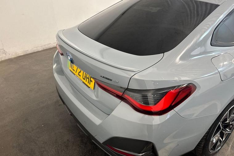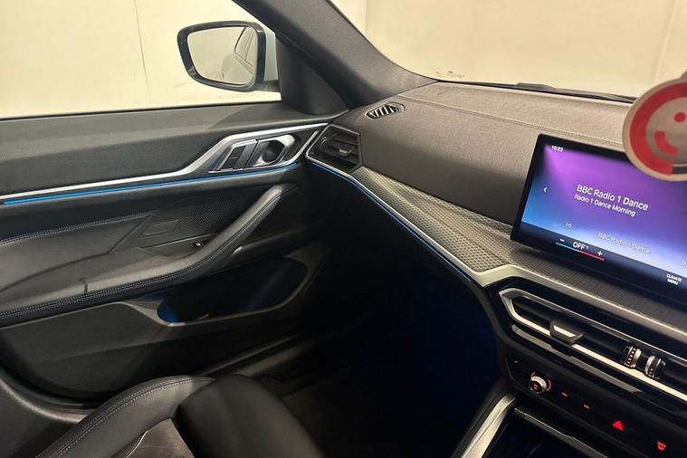 This 2022 BMW i4 40 M Sport offers the peace of mind that comes with a clear vehicle history check and a single owner from new. As an electric vehicle, it boasts an impressive battery total capacity of 84 kWh, providing a maximum range of 351 miles when new. This model features the M Sport trim, enhancing its dynamic appeal. For convenience, it includes automatic air conditioning, LED headlights, and a parking assistant with a rear camera. Inside, youll find the BMW Live Cockpit Plus with Bluetooth connectivity and heated front seats for added comfort. The MOT is valid until October 2026, further assuring its roadworthiness. Experience the thrill of electric performance with this BMW i4, capable of accelerating from 0 to 60mph in just 5.6 seconds, a highlight that sets it apart from many other vehicles. Its electric powertrain offers a substantial maximum range of 351 miles, making it a practical choice for longer journeys. Charging is convenient, with a full charge at home taking approximately 12 hours and 30 minutes using a 7kW charger, while rapid public charging can achieve 80% capacity in as little as 34 minutes. This i4 also offers generous boot space, making it a versatile option for everyday use and travel.