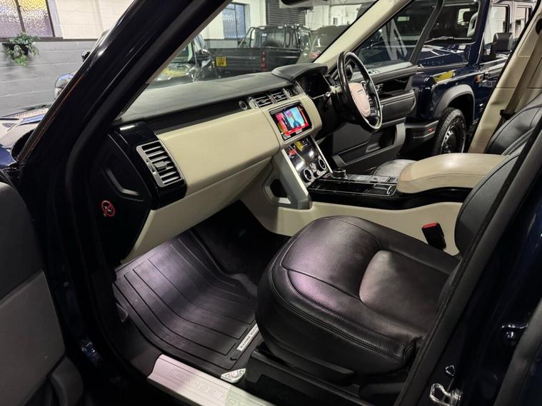 2018 Land Rover Range Rover Vogue 3.0 TDV6 Euro 6 Presented in elegant Loire Blue, this 2018 facelift Range Rover Vogue offers the assured refinement and presence expected of Land Rovers flagship model. The 2018 facelift introduced subtle exterior refinements alongside notable technological enhancements, including updated LED lighting, the Touch Pro Duo infotainment system, improved driver-assistance features, and greater interior sophistication throughout. This example has had just two previous keepers and has covered 82, 000 miles, supported by an excellent Land Rover service history with seven main-dealer services up to 78, 500 miles, including cambelt replacement at the most recent service. Specification highlights include: Touch Pro Duo navigation system Apple CarPlay Television functionality Sliding glass panoramic roof Heated front and rear seats Heated steering wheel Front and rear parking sensors with reversing camera Lane Keep Assist and Blind Spot Assist Adaptive cruise control Rear climate control Privacy glass 22-inch alloy wheels Ghost alarm and immobiliser system A well-specified and carefully maintained Vogue, combining understated luxury, long-distance comfort, and commanding road presence.