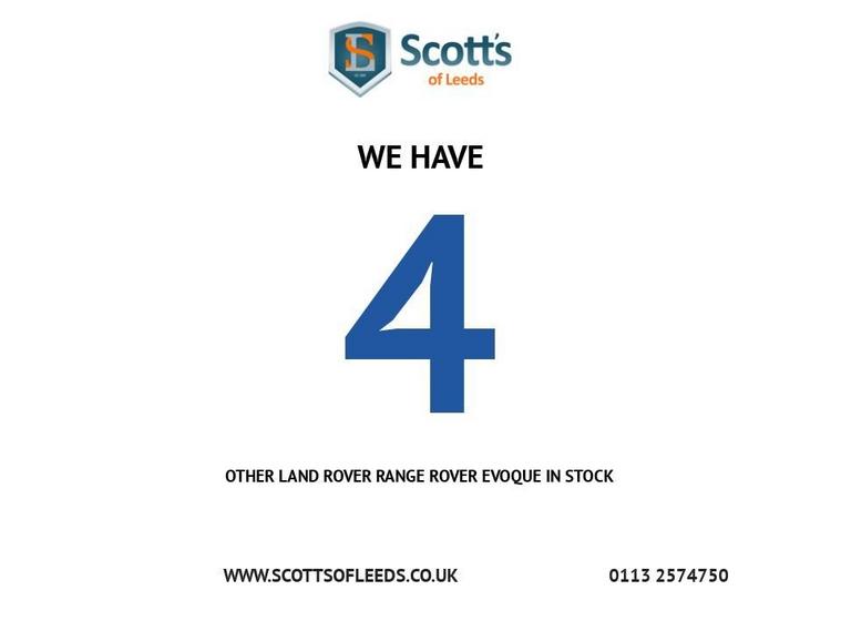 Scotts of Leeds used Car Sales are pleased to offer this LAND ROVER RANGE ROVER EVOQUE 2.0 eD4 SE Tech SUV 5 Door Diesel Manual in Black. The car is in good condition throughout, in the best colour combination and a great specification including Satellite Navigation, Cruise control, Speed limiter, DAB radio, Bluetooth, AUX and USB, Front and Rear parking sensors, Heated leather seats, privacy glass, automatic lights and wipers, alloy wheels, isofix, Electric windows, Pushbutton start, and much much more. 1 Former Keeper supplied with an up to date service record, an MOT until February 2027 and 2 Keys ready to drive away. 3 MONTH NATIONWIDE WARRANTY provided with all vehicles. NATIONWIDE DELIVERY also available. A guaranteed 12 Months MOT can be added for an extra £100. DISCLAIMER: The above specification is true and correct. Any other specification listed elsewhere can sometimes be incorrect. Please check with Sales Executive to clarify this if needed prior to purchase.