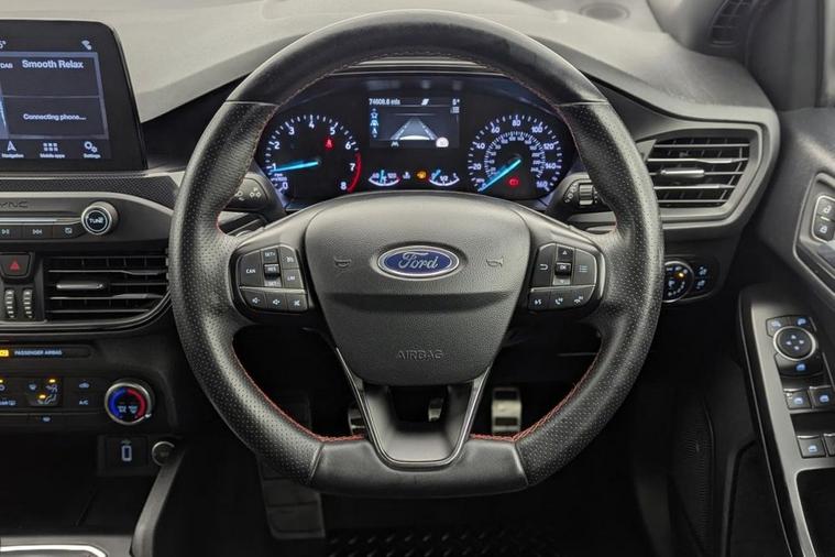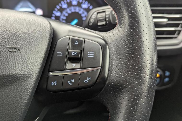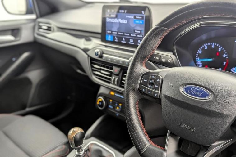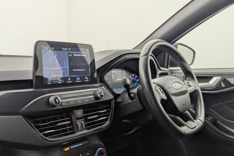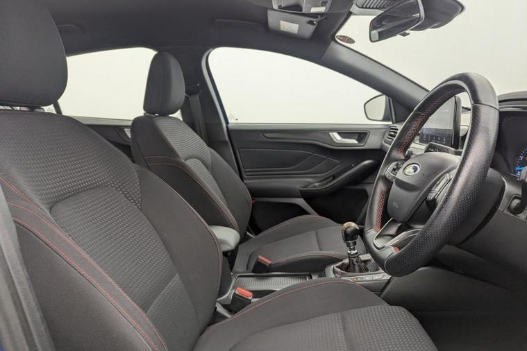 A stylish and sporty five-door hatchback that blends everyday practicality with engaging performance. Powered by Fords efficient 1.0-litre EcoBoost turbocharged petrol engine, this Focus ST-Line delivers approximately 138 bhp and Euro 6 compliant emissions, offering a strong balance of fuel economy and responsiveness suitable for both urban commuting and longer journeys. The manual gearbox and dynamic suspension tuning give the ST-Line model a more engaging driving character compared with standard trims, while retaining the comfort and refinement expected of a modern hatchback. With combined fuel economy around the high-50s mpg and low CO? emissions, its efficient and ULEZ compliant for UK cities.
