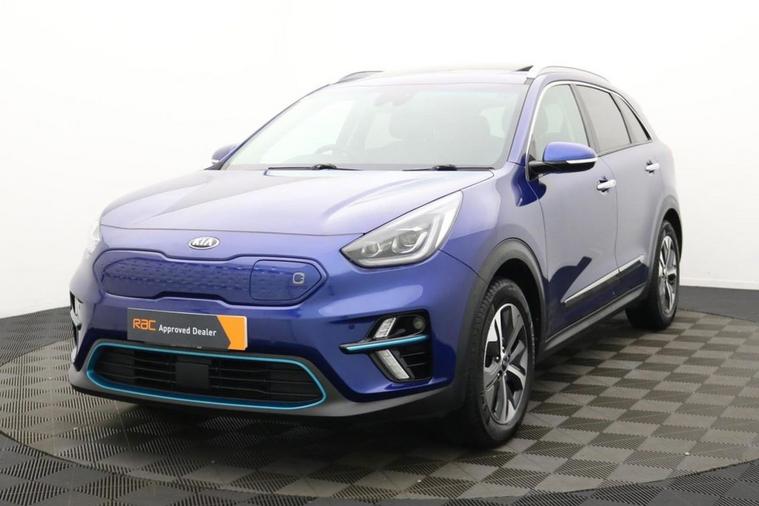 A practical, efficient and stylish electric SUV, the 2020 Kia Niro 64?kWh 4+ combines modern technology with everyday usability. Powered by a 201?bhp electric motor and paired with a smooth automatic transmission, this all-electric Niro offers zero-emissions driving, instant torque, and a range of up to 280300 miles on a full charge (WLTP), making it ideal for both city commuting and longer journeys. This 4+ trim delivers premium features and comfort, including advanced driver assistance systems, a large touchscreen infotainment system with navigation, Apple CarPlay and Android Auto, dual-zone climate control, and high-quality interior finishes. With its SUV practicality, it provides spacious seating for five, a generous boot, and clever storage solutions throughout the cabin. On the exterior, the Niro 4+ SUV features alloy wheels, LED daytime running lights, aerodynamic styling, and a sleek, modern design that signals its electric performance. With rapid charging capability, efficient energy management, and Kias reputation for reliability and warranty coverage, this Niro is a smart, eco-friendly choice for families or individuals looking to switch to electric motoring.
