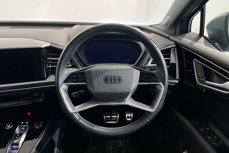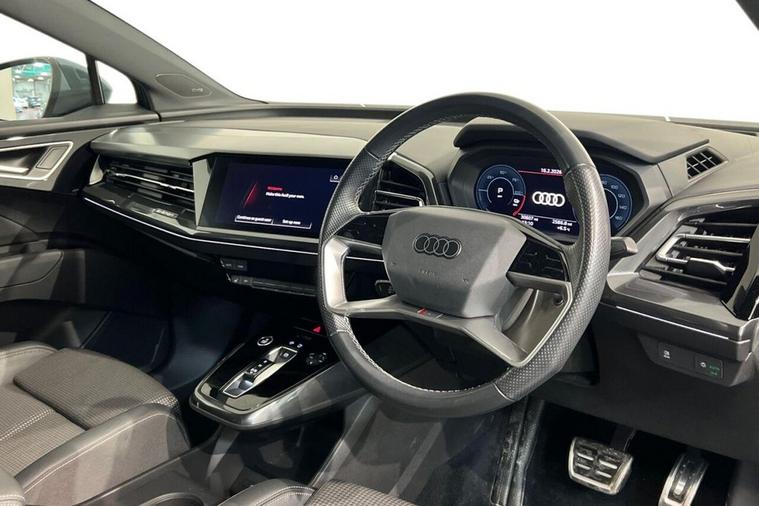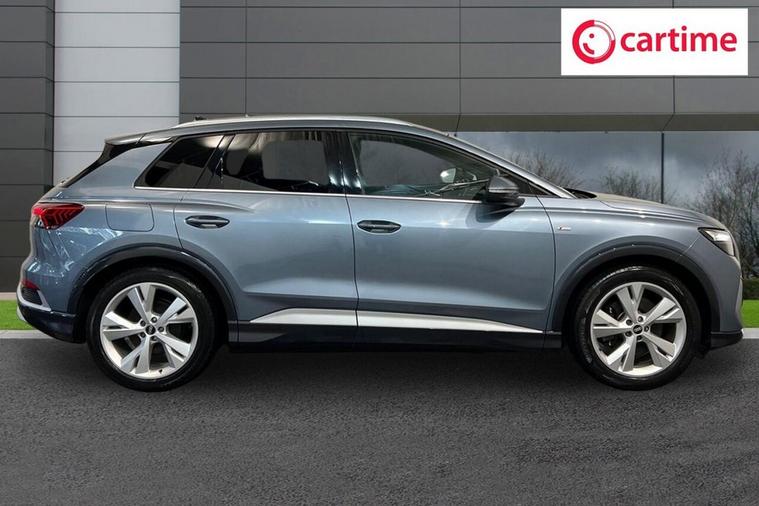 With an MOT valid until January 2027 and a clear vehicle history check, this 2022 Audi Q4 e-tron S line presents a compelling proposition for the discerning buyer. This electric vehicle boasts a substantial 82 kWh battery, offering a maximum range of 312 miles when new, ensuring your journeys are both efficient and extensive. Its provenance is further enhanced by a single owner and a remarkably low mileage of just 30798 miles for its age. Inside, youll find comfort and convenience with heated front seats, a Bluetooth interface for seamless connectivity, and 3-zone electronic climate control to keep everyone comfortable. Practicality is also key, with rear parking sensors to aid manoeuvring and LED headlights with LED daytime running lights for enhanced visibility. The Audi Q4 e-tron S line stands out with its impressive electric capabilities. A full charge at home using a 7kW charger takes approximately 11 hours and 30 minutes, while rapid public charging can replenish the battery from empty to 80% in as little as 30 minutes, making longer trips more manageable. The generous boot space provides ample room for luggage or shopping, a significant advantage for families or those who require extra capacity. These factors, combined with its advanced features and excellent condition, position this Q4 e-tron as a superior choice in the electric SUV market.