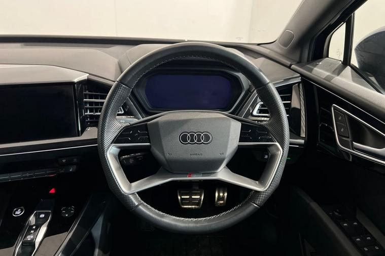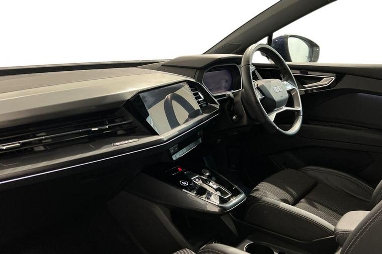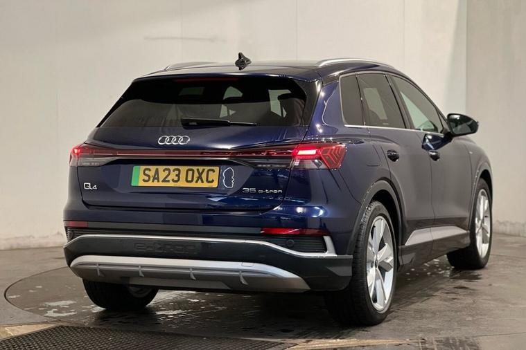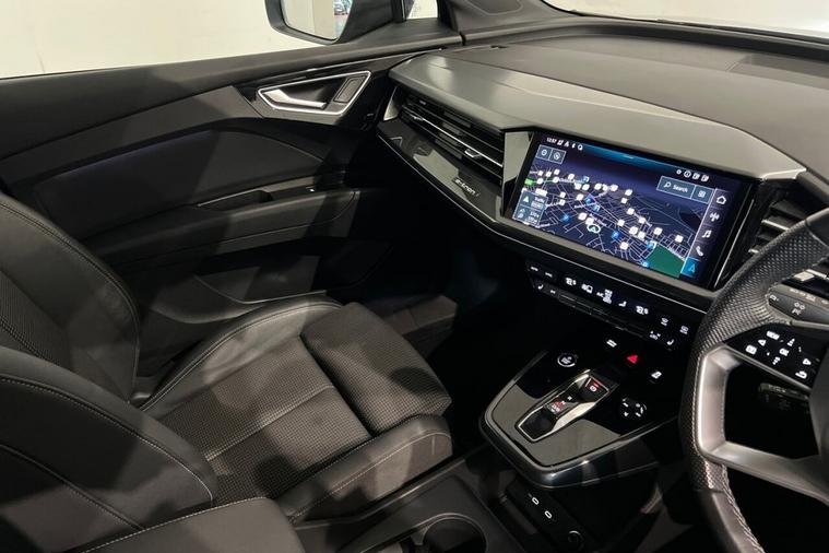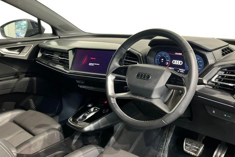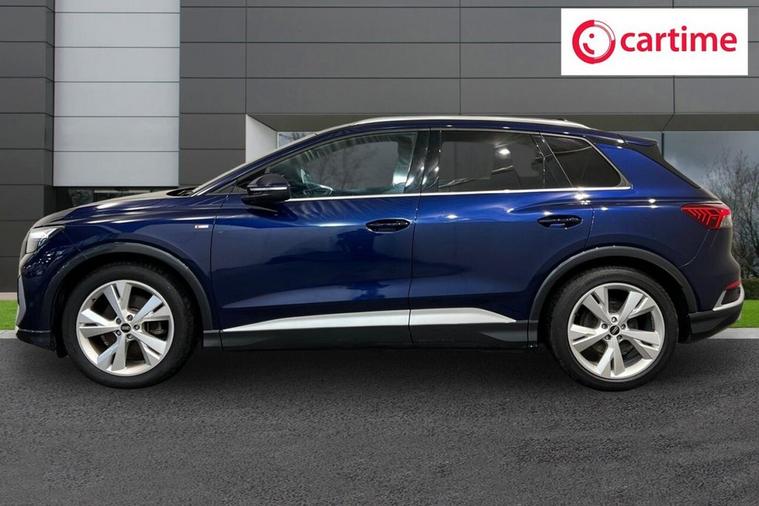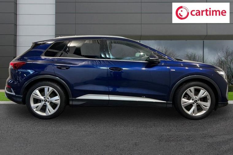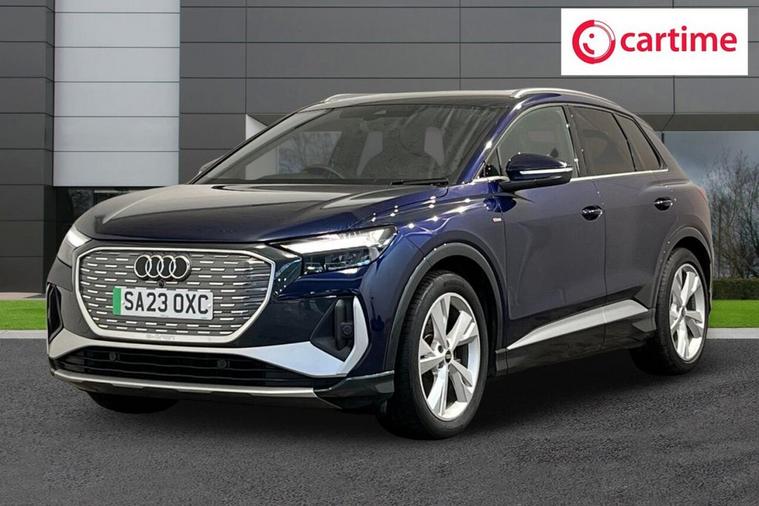 This 2023 Audi Q4 e-tron S line presents a superb ownership proposition, having been cherished by just one owner from new and boasting exceptionally low mileage for its age at only 20, 912 miles, with a clear vehicle history check. As a fully electric vehicle, it offers a compelling blend of performance and efficiency, featuring a 55 kWh battery that provides a maximum range of 211 miles when new. Charging is convenient, with a full charge at home using a 7kW charger taking approximately 7 hours and 30 minutes, while rapid public charging can replenish the battery from empty to 80% in as little as 28 minutes, supported by its 110kW DC charging capability. This S line variant also includes a 7.2 kW onboard charger and comfort auxiliary air conditioning, ensuring a pleasant cabin environment. The Audi Q4 e-tron S line excels with its advanced technology and practicality. The Audi Smartphone Interface seamlessly integrates your phone, offering access to Android Auto and Apple CarPlay, keeping you connected on the go. For ultimate comfort, the vehicle is equipped with 3-zone electronic climate control, allowing personalised temperature settings for all occupants. The generous boot space is a significant advantage, providing ample room for luggage, shopping, or sports equipment, making it a highly versatile choice. These features, combined with its electric powertrain and Audis renowned build quality, position this Q4 e-tron as a superior option for those seeking a premium, eco-conscious driving experience.