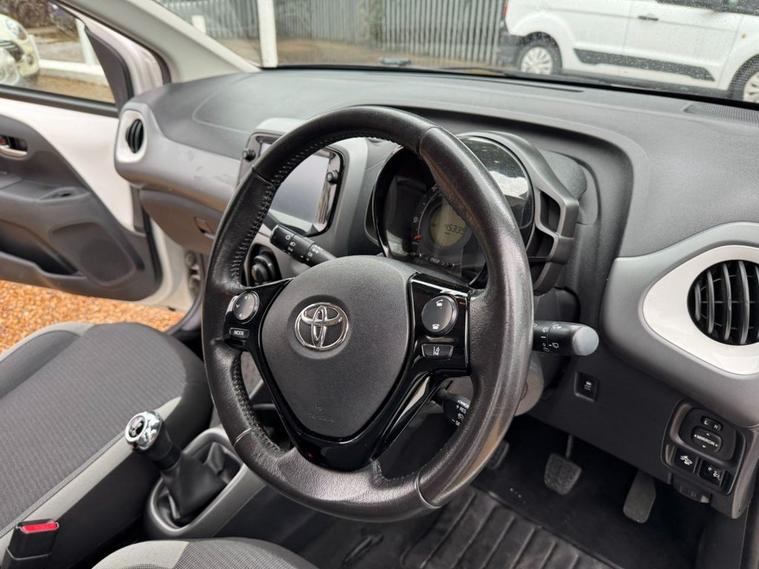We have a Toyota Aygo offered in excellent condition throughout. A1 owner car that has clearly been well maintained, comes with service history, most recent at 41k miles and an mot that runs until Dec 26. This AYGO x-play is equipped with a 7in x-touch multimedia system featuring Bluetooth connectivity, allowing for seamless smartphone integration with both Android Auto and Apple CarPlay, all powered by Pioneer. Youll also benefit from manual air conditioning to keep you comfortable and a reversing camera with parking assistance for easier manoeuvring. This vehicle stands out with its impressive fuel economy of 57 mpg, low CO2 emissions, and a low insurance group, all of which indicate it is a more economical choice compared to similar vehicles.