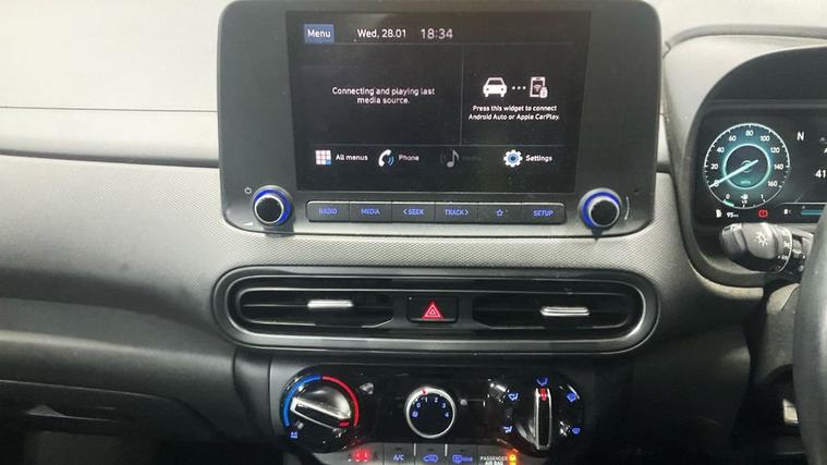 Discover this 2021 Hyundai KONA T GDi SE Connect, boasting exceptionally low mileage for its year at just 29, 000 miles. This Euro 6 compliant 1.0 litre petrol hybrid is presented with a clear vehicle history check and will come with a full 12 months MOT for your peace of mind. The SE Connect trim level offers a user friendly experience, featuring an 8 inch touchscreen display audio system that seamlessly integrates with your smart devices, including Android Auto. Navigating tight spots is made effortless thanks to the rear camera and guidance system, complemented by rear parking sensors and automatic headlights that activate with a dusk sensor. This Hyundai KONA stands out with its desirable features, indicating a superior ownership experience compared to other vehicles in its class. The combination of a rear camera and parking assistance systems significantly enhances driver awareness and manoeuvrability. Furthermore, its low insurance group rating means you can expect more affordable running costs. This well maintained KONA offers a practical and enjoyable driving experience, making it an excellent choice for those seeking a reliable and feature rich compact car.