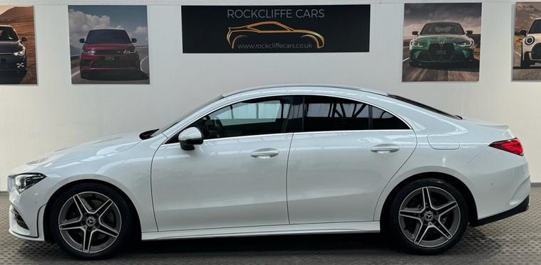Mercedes-Benz CLA 1.3 CLA200 AMG Line Coupe Automatic Petrol Euro 6 Rockcliffe Cars are pleased to offer this WG20XKD Mercedes-Benz CLA200 AMG Line Coupe, a sleek and sporty four-door coupe that combines striking design, modern technology and refined performance. Finished in White, this CLA presents beautifully and has covered 60, 000 miles, supported by a Full Mercedes-Benz Service History, offering complete peace of mind. Powered by the responsive 1.3 petrol engine producing 163 PS and paired with the smooth 7G-DCT automatic transmission, this CLA delivers an engaging yet economical drive, perfectly suited to both everyday motoring and longer journeys. Key Highlights 1.3 Petrol engine producing 163 PS 7G-DCT automatic gearbox Euro 6 compliant (s/s) AMG Line specification Finished in White 60, 000 miles Full Mercedes-Benz Service History Exterior Features AMG Line exterior styling 18-inch AMG alloy wheels Diamond radiator grille LED High Performance headlights LED daytime running lights Frameless doors Body-coloured door mirrors Electrically adjustable and heated door mirrors Automatic headlights Rain-sensing windscreen wipers Interior & Comfort AMG Line sports seats with part leather / Dinamica upholstery Heated front seats Flat-bottom multifunction AMG steering wheel Aluminium interior trim Dual-zone automatic climate control Ambient interior lighting Keyless start Black headlining Split folding rear seats Technology & Infotainment MBUX multimedia system Touchscreen colour display Integrated satellite navigation Bluetooth hands-free and audio streaming DAB digital radio USB connectivity Voice control system Steering wheel-mounted controls On-board computer Safety & Driver Assistance ABS, ESP and traction control Multiple airbags Active Brake Assist Attention Assist Lane Keeping Assist Cruise control with speed limiter Tyre pressure monitoring system ISOFIX child seat mounting points Hill start assist Alarm and immobiliser Performance & Practicality The CLA200 AMG Line Coupe offers a refined and confident drive with responsive acceleration and impressive efficiency. Its low, sporty stance delivers excellent road presence, while the four-door layout and usable boot space make it practical as well as stylish. Supplied by Rockcliffe Cars Master Rd, Thornaby, TS17 0BE 01642906939 Viewings and test drives are welcome. This well-maintained Mercedes-Benz CLA200 AMG Line Coupe represents fantastic value for a premium, modern Mercedes and is ready for its next owner.