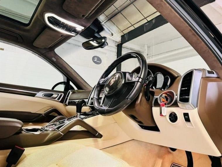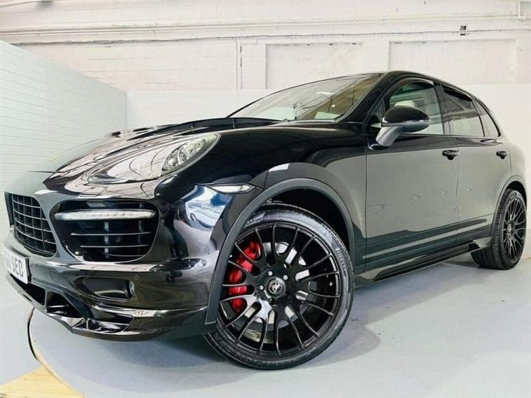 HAMANN EDITION CAYENNE TURBO WITH £28K IN FACTORY EXTRAS WITHOUT THE HAMANN UPGRADES, FANTASTIC EXAMPLE, HAMANN POWER UPGRADE 610 BHP WITH 850NM, PRESENTED IN JET BLACK METALLIC, FULLY COLOUR CODED WITH BLACK GLOSS PACK COMPLIMENTED WITH A PORSCHE EXCLUSIVE TWO TONE LEATHER PACKAGE, PRESENTED IN CHAMPAGNE LEATHER WITH A FULL EXTENDED LEATHER PACKAGE THROUGHOUT CABIN, FULL CABIN IN LEATHER & SUEDE, SECONDARY HIDE IN UMBER, DASH IN UMBER TWINNED WITH THE CHAMPAGNE STITCHING, FULLY ELECTRIC MEMORY 18 WAY SPORTS SEATS, COMFORT MEMORY PACKAGE, ELECTRIC LUMBAR & BOLSTERS, HEATED / COOLED SEATS FRONT & REAR, 3 SPOKE SPORTS MULTI-FUNCTION STEERING WHEEL IN BLACK LEATHER WITH CARBON FIBRE INLAYS, HEATED STEERING WHEEL, ELECTRIC STEERING WHEEL RAKE ADJUST & PADDLE SHIFT GEARS FINISHED IN ALLY, PCM 3 PORSCHE COMMUNICATIONS MANAGEMENT, REVERSE CAMERA, BOSE SURROUND SOUND PACK, AUX INPUT, CD CHANGER, DVD FUNCTION, MOBILE PHONE PREPARATION, 6 DVD CHANGER, DAB HI FI, VOICE CONTROL, PDCC PORSCHE DYNAMIC CHASSIS CONTROL, SERVOTRONIC STEERING, PDLS PORSCHE DYNAMIC LIGHTING SYSTEM AUTO BI XENONS WITH DYNAMIC CONTROL & CORNERING FUNCTION, HEADLIGHT WASH SYSTEM, AUTO MAIN BEAM ASSIST, OPENING PANORAMIC GLASS ROOF WITH ELECTRIC BLIND, SUEDE HEADLINING IN UMBER, 4 ZONE CLIMATE CONTROL, CRUISE CONTROL WITH SPEED LIMITER & DISTANCE CONTROL, ELECTRIC WINDOWS, ELECTRIC POWER FOLDING, POWER OPEN & CLOSE TAILGATE, REAR WASH WIPE, ELECTRIC REAR DOOR BLINDS, SPORTS CHRONO PACKAGE, BLACK DIALS TO DASH, 100 LITRE FUEL TANK, PASM PORSCHE ACTIVE SUSPENSION MANAGEMENT, PSM PORSCHE STABILITY MANAGEMENT, PVTS PORSCHE VEHICLE TRACKING SYSTEM, CARBON FIBRE DASH & STEERING WHEEL & GEAR SHIFT, AUTO DIMMING MIRRORS INTERIOR & EXTERIOR DIMMING MIRRORS, COURTESY LIGHTS ON EXTERIOR MIRRORS, LIGHTS ON VANITY MIRRORS, STAINLESS STEEL DOOR ENTRY PLATES WITH MODEL BRANDING, STAINLESS STEEL PEDALS, TMS TYRE PRESSURE MONITORING SYSTEM, PORSCHE OVERMATS IN CHAMPAGNE CARPET WITH PORSCHE BRANDING, ISOFIX, START STOP FUNCTION, CUPHOLDERS FRONT & REAR, CENTRE ARM BOX, FULL PRIVACY GLASS, 4 WINDOW FLUTES, FRONT & REAR PARKING AIDS, TINTED LED REAR LIGHTS, THE LIST GOES ON! HAMANN BODY STYLING, HAMANN CARBON FIBRE BONNET WITH VENTS, HAMANN UPGRADE SPORTS FRONT BUMPER, HAMANN SIDE SKIRTS, HAMANN ROOF SPOILER, HAMANN REAR BUMPER WITH LOWER VALANCE, HAMANN SPORTS EXHAUST WITH BLACK QUAD TIPS-SOUNDS AWESOME, HAMANN 22INCH MONO BLOCK LIGHTWEIGHT ALLOYS FINISHED IN GLOSS BLACK-JUST REFURBISHED, 4 NEW PIRELLIS, GUARDS RED BRAKE CALIPERS,