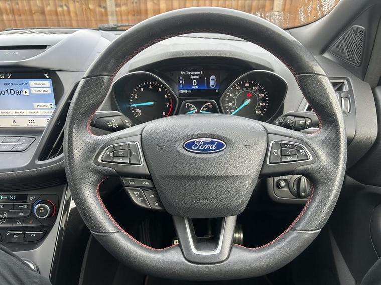 This 2019 Ford Kuga T ST Line X boasts exceptionally low mileage for its age, having covered just 26, 907 miles, and comes with a clear vehicle history check. This Euro 6 compliant 1.5 litre petrol model offers a premium driving experience with its ST Line X trim, featuring heated driver and passenger seats for ultimate comfort. Convenience is enhanced by the Ford Key Free System with a hands free power tailgate, allowing for effortless access. Further enhancing this Kuga are the advanced Ford SYNC 3 DAB navigation system, complete with Android Auto and Apple CarPlay integration, and Bluetooth connectivity for seamless communication and entertainment. The Enhanced Active Park Assist, including front and rear parking sensors, makes manoeuvring in tight spaces simple. These features collectively demonstrate a superior level of specification and comfort compared to other vehicles in its class.