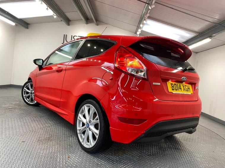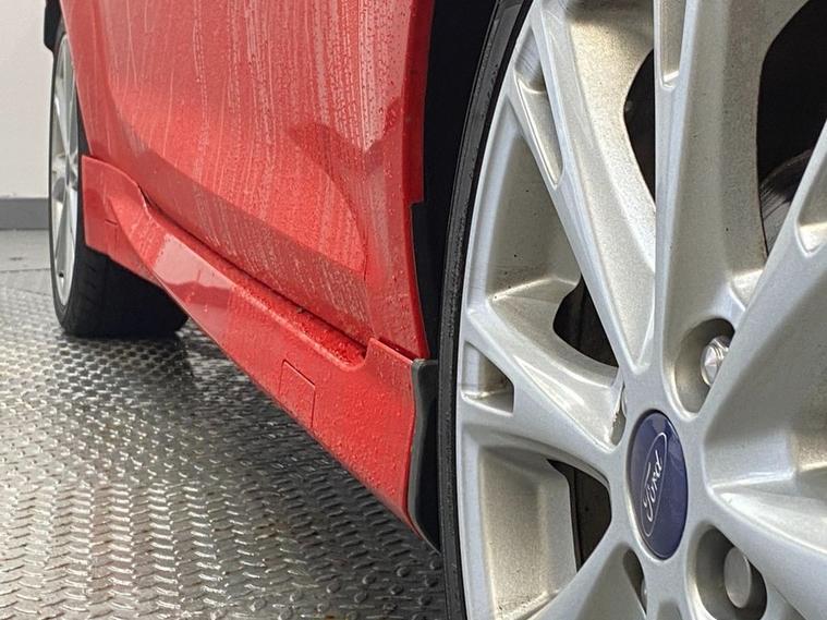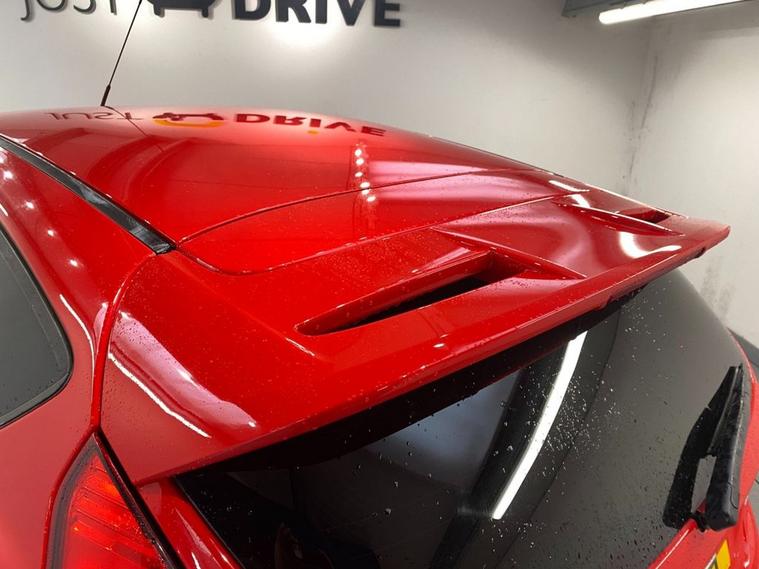 If the Fiesta ST is a little too extreme for you Ford may have the perfect solution with the Zetec S model. As well as a stylish Race Red colour scheme, it offers sports suspension and a lively 123 Bhp. But whats most impressive about that figure is that it comes from the 1.0-litre Ecoboost engine, capable of up to 76 mpg and coming in at just £20 per year for road tax ! The sharp bodystyling includes 17 alloy wheels, side skirts, privacy glass and a vented high level rear spoiler. Inside you get comfortable charcoal sports seats that are clean and supportive. Theres also air conditioning, Bluetooth connectivity with voice control for multiple devices, a leather multi-function sport steering wheel, Fords Quickclear heated windscreen and AUX / USB inputs. For the year of manufacture the mileage is very reasonable at just over 62, 000 and this is reflected in the cars outstanding condition.
