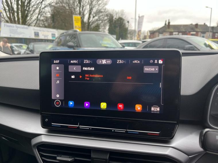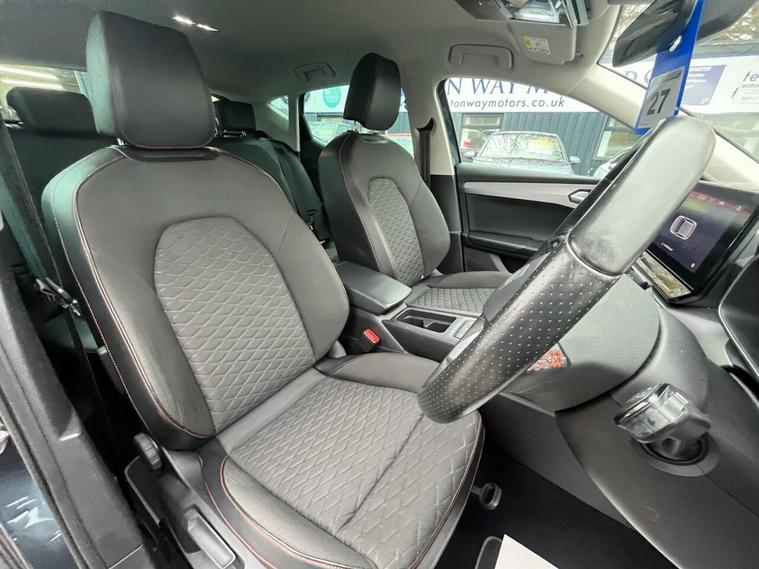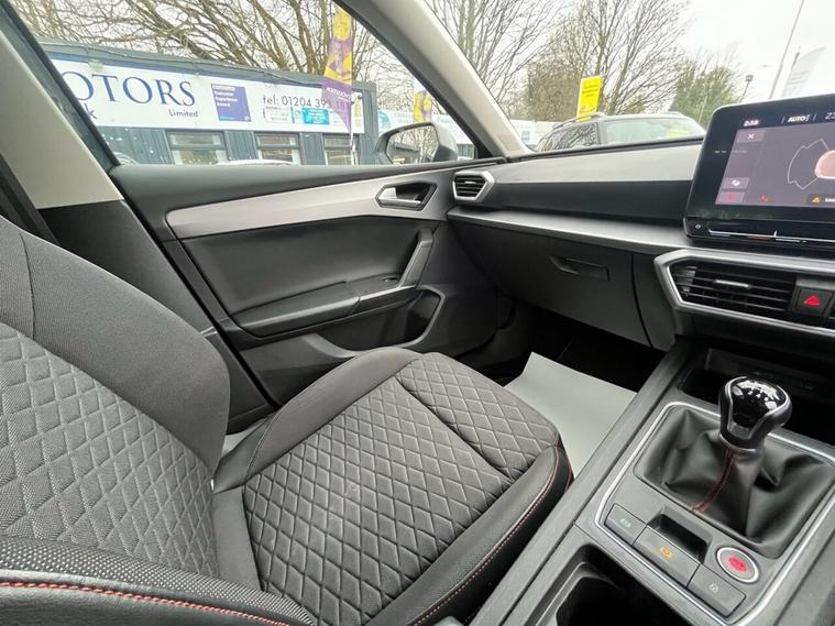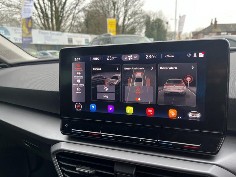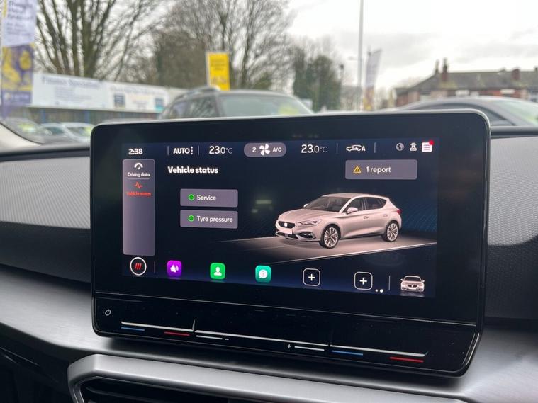 This 2021 SEAT Leon TSI EVO FR is presented in excellent condition, having had only one owner from new and boasting a full service history. It is a Euro 6 compliant 1.5 litre petrol model, and a clear vehicle history check confirms its sound background. The car comes with 12 months MOT for your peace of mind, and its last service was completed at 30, 602 miles. Inside, you will find a wealth of technology, including Full Link Smartphone Integration with wireless Apple CarPlay and wired Google Android Auto, a wireless device charger, and a Media System Plus with navigation and Bluetooth connectivity. The FR trim level ensures a sporty and engaging driving experience, with the 1.5 litre TSI engine delivering a brisk 0-60mph time of 9.5 seconds, demonstrating its capability compared to other vehicles in its class. For added convenience and safety, this Leon features Park Assist with front and rear parking sensors, and a three zone climate control system to keep all occupants comfortable. This combination of advanced features and strong provenance makes this SEAT Leon a compelling choice.