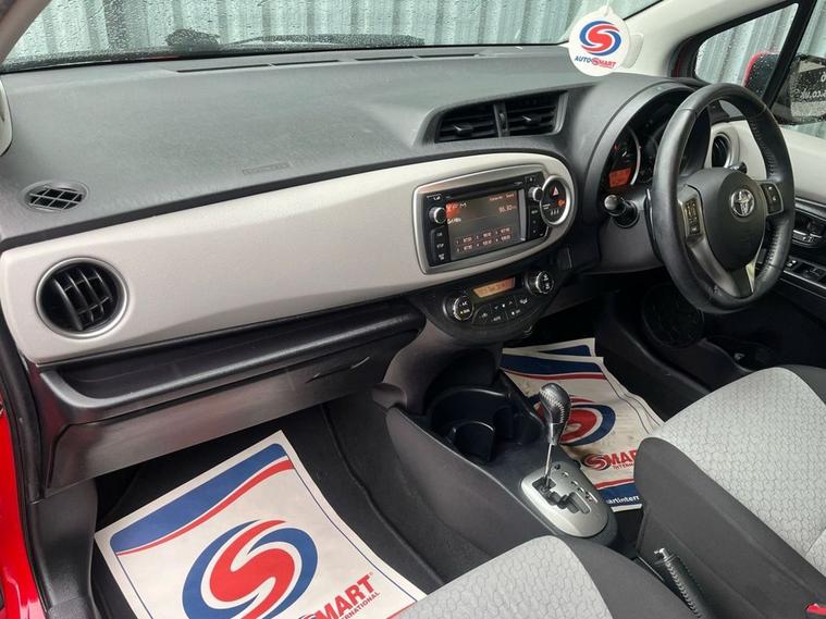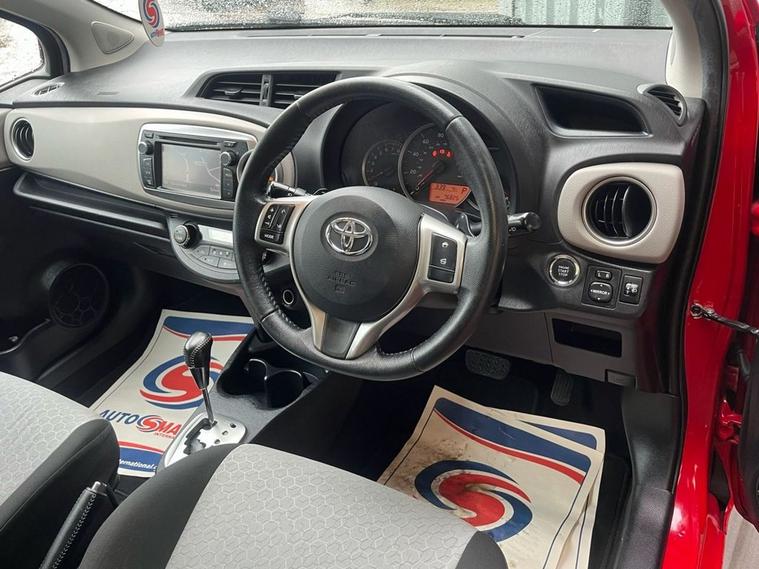 Moto Vation Car Sales are offering this AUTOMATIC Toyota Yaris in a desirable colour with a colour combo interior and a sunroof! Low miles for the age-76K and with only Two previous owners from new, it is clear it has been loved. Would make a great first time car with its low running and insurance costs. Supplied with a Full Years MOT and Full Service History attached with 13 stamps- last in our Service Centre in 02/26! Bosting a great specification including a Multi Functional Steering Wheel, AUX, USB, Bluetooth, Isofix, Paddleshaft, Electric Windows, Sat Nav, Reverse Camera, Push Button Start, Electric Windows and Auto Headlights. Only £35 annual tax! Please confirm with a Sales Executive the amount of keys this vehicle comes with. All of our vehicles come with a 3 months Nationwide warranty and a 12 months basic AA breakdown cover. Please read our reviews! Please note- the above vehicle specification is confirmed and correct. The vehicle specification listed elsewhere may sometimes be inaccurate so please check with the Sales team when enquiring to clarify this prior to purchase.