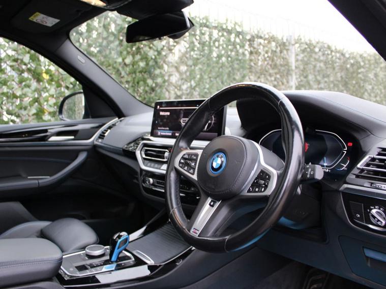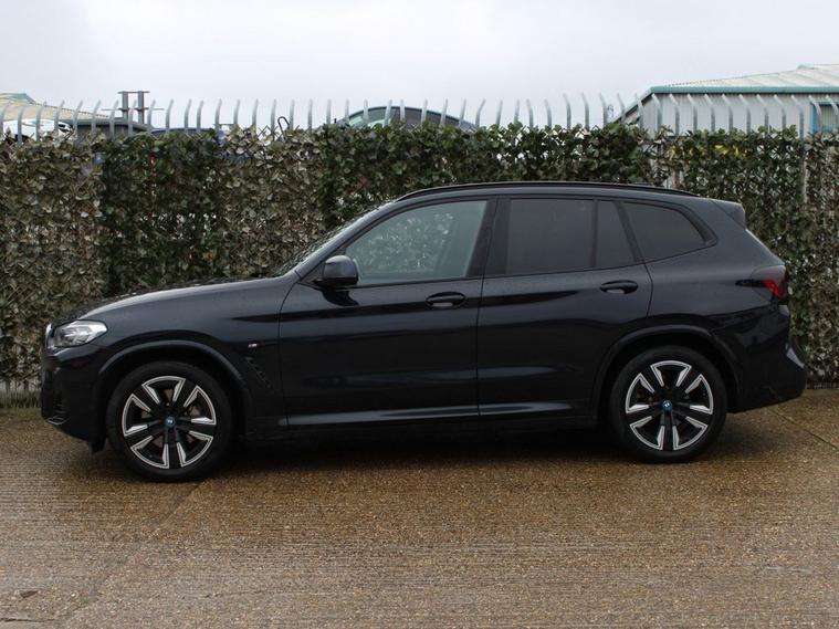 This 2022 BMW iX3 M Sport presents an exceptional opportunity with its remarkably low mileage of just 23, 329 miles, a testament to its single owner. As an electric vehicle, it offers a sophisticated driving experience, boasting an 80 kWh battery that provides a maximum range of 285 miles when new. This M Sport variant comes equipped with the advanced BMW Live Cockpit Professional, featuring Bluetooth connectivity, and automatic air conditioning with climate control. For enhanced comfort and safety, it includes Heated Seats for the driver and front passenger, a Heated Steering Wheel, and the Driving Assistant Professional suite, which incorporates adaptive cruise control. The BMW iX3 M Sport excels in performance and practicality, with an impressive acceleration of 0 to 60 mph in just 6.8 seconds, demonstrating its dynamic capability. Its electric powertrain ensures a smooth and responsive drive, complemented by a full charging time at home of 11 hours 20 minutes using a 7kW charger, and a rapid fastest public charging time from empty to 80% in only 32 minutes. Furthermore, this model offers generous boot space, making it a versatile choice for everyday use and longer journeys, setting it apart from other vehicles in its class.