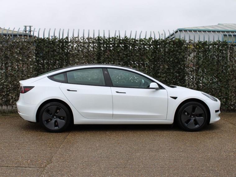 **91% BATTERY HEALTH** This 2021 Tesla Model 3 Standard Range Plus presents an exceptional ownership proposition with its remarkably low mileage of just 16, 815 miles, a testament to its careful single owner. As an electric vehicle, it boasts a 53 kWh battery offering a maximum range of 278 miles when new. Recharging is convenient, with a full charge at home using a 7kW charger taking approximately 7 hours and 10 minutes, while rapid charging to 80% on a public charger can be achieved in as little as 29 minutes. This Model 3 comes equipped with desirable features including Adaptive Cruise Control, Keyless Go for effortless entry and starting, and 12 way power adjustable front and rear heated seats for year round comfort. The 2 Zone Climate Control ensures personalised cabin temperatures, and the Park Assist Camera aids in manoeuvring. The generous boot space is a practical highlight, offering ample room for luggage or shopping. The combination of its electric powertrain, impressive range, and rapid charging capabilities positions this Tesla Model 3 favourably against other vehicles in its class. Its advanced features, such as the adaptive cruise control and heated seating, further enhance the driving experience, making it a compelling choice for those seeking an efficient and well equipped electric car.