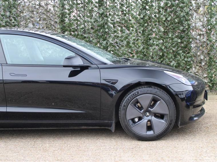 This 2022 Tesla Model 3 presents an exceptional ownership proposition, having been driven by just one owner and boasting remarkably low mileage for its age at only 26, 344 miles. As a fully electric vehicle, it offers a substantial maximum range of 317 miles from its 62 kWh battery. Charging is convenient, taking approximately 8 hours for a full charge at home using a 7kW charger, while rapid public charging can replenish the battery from empty to 80% in as little as 29 minutes. This Model 3 is equipped with modern features including bright LED headlights, a front park assist camera for easier manoeuvring, a heated steering wheel for comfort on colder days, and a 2 zone climate control system to keep all occupants comfortable. The fixed panoramic glass roof adds an airy feel to the cabin. The generous boot space in this Tesla Model 3 is a significant advantage, providing ample room for luggage, shopping, or sports equipment. The combination of its impressive electric range, rapid charging capabilities, and the low mileage and single owner provenance make this vehicle stand out from others in its class. Its advanced features, such as the LED lighting and parking assistance, further enhance the driving and ownership experience, offering a blend of efficiency, technology, and practicality.