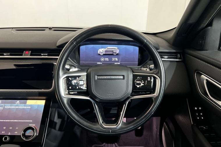 This 2021 Land Rover Range Rover Velar P400e R Dynamic SE offers an exceptional blend of performance and efficiency. As a Euro 6 compliant model, it features a sophisticated 2.0 litre petrol plug in hybrid engine paired with a Four Wheel Drive drivetrain, ensuring capability in all conditions. The R Dynamic SE trim is enhanced by the R Dynamic Black Exterior Pack and stylish 20 inch alloy wheels with a gloss black finish. Inside, you will find luxurious perforated Windsor leather in Ebony and premium carpet mats, complemented by the convenience of Park Assist. Experience exhilarating acceleration with a 0 to 60 mph time of just 5.1 seconds, demonstrating its dynamic prowess. This impressive performance, combined with the plug in hybrid technology, sets it apart from many other vehicles in its class. Furthermore, the generous boot space provides ample practicality for everyday needs and longer journeys, making this Range Rover Velar a truly versatile and desirable choice.