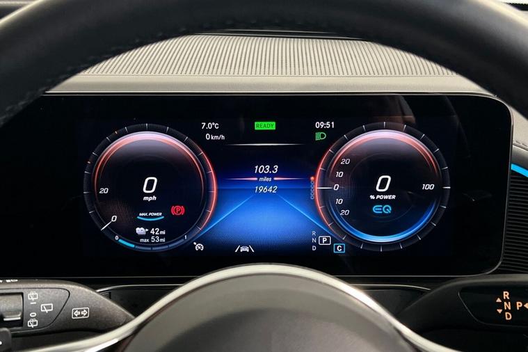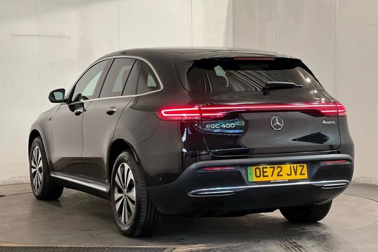 The Mercedes-Benz EQC 400 Sport is a 2022 model, boasting a sleek and sporty design. This electric vehicle is powered by a Four Wheel Drive drivetrain and features an impressive 88 kWh battery, offering a maximum range of 255 miles on a single charge. The EQC 400 Sport is equipped with a range of advanced features, including the Mercedes-Benz Sound System, MULTIBEAM LED Headlights, and a Parking Package with Parking Assist PARKTRONIC and Rear Camera. Additionally, the vehicle comes with Blind Spot Assist and Heated Front Seats for enhanced comfort and safety. With a low mileage of 19, 631 miles for its age and a single owner, this vehicle has been well cared for and maintained. The EQC 400 Sport is a powerhouse on the road, accelerating from 0-60mph in just 5.1 seconds. Its electric drivetrain provides a smooth and responsive driving experience. The vehicles large boot space is another significant advantage, making it an ideal choice for those who need to transport bulky items. With an MOT valid until October 2026, you can drive away with confidence. When it comes to charging, the EQC 400 Sport can be fully charged at home in 12 hours and 13 minutes using a 7kW charger, while public charging can reach 80% in just 45 minutes. This impressive combination of performance, features, and convenience makes the Mercedes-Benz EQC 400 Sport a compelling choice for anyone in the market for a reliable and efficient electric vehicle.