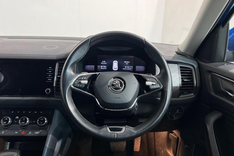 This 2022 Skoda Kodiaq TSI SE L Executive is a superb example, having been owned by just one person since new. This seven seat SUV, powered by a 1.5 litre petrol engine, meets Euro 6 emissions standards and boasts an MOT valid until November 2026, offering peace of mind for the road ahead. Inside, youll find a host of convenient features designed to enhance your driving experience, including KESSY keyless entry and start, dual zone climate control with a humidity sensor, and wireless phone charging. Parking is made simple with front and rear parking sensors and a rear view camera, all contributing to the SE L Executive trims sophisticated feel. The Kodiaq TSI SE L Executive offers impressive performance, accelerating from 0 to 60 miles per hour in just 9.5 seconds, a figure that demonstrates its responsive nature compared to other vehicles in its class. This combination of practicality, comfort, and efficient performance makes it an excellent choice for families or anyone seeking a versatile and well equipped SUV.