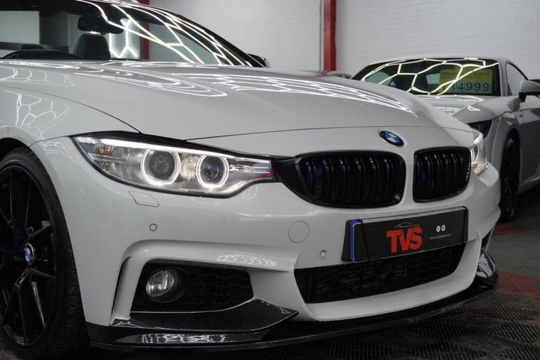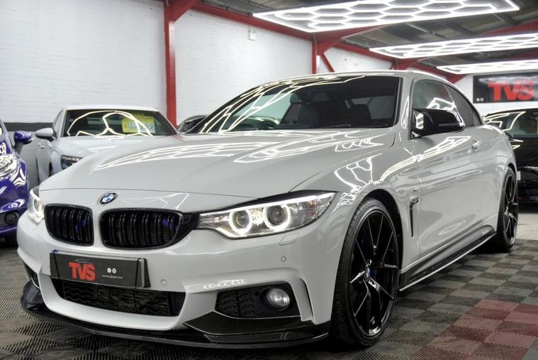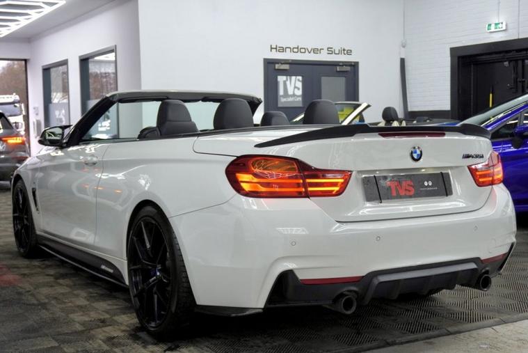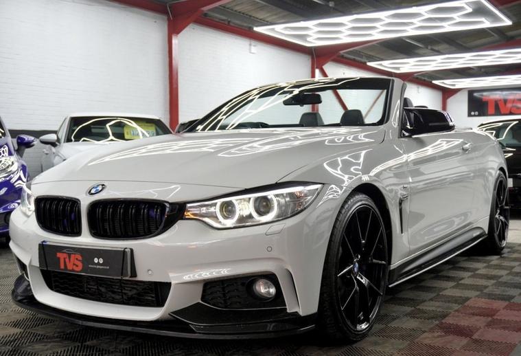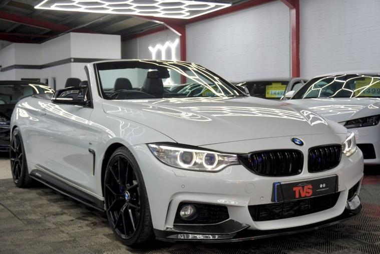 2014 BMW 435i M Sport 2 door Convertible 306 ps (Euro 6) - Automatic - Alpine White with full black Dakota leather interior (heated front seats) - 76k miles - 2 remote keys - BMW main dealer and independent garage service history - fresh 12 months MOT with no advisories - Platinum warranty - full 12 montha AA roadside assistance also included! M Performance kit! 19 Black M Performance alloy wheels! M Performance LED steering wheel! Warm Air collar! Wind Deflector! Power fold mirrors! Convertible Comfort package! M Sport braking system! Adaptive M Sport suspension! Xenon headlights! Extended storage!