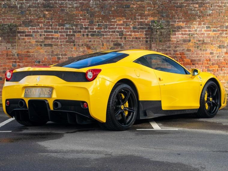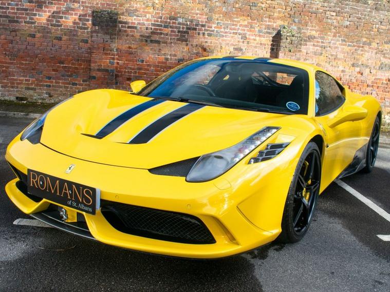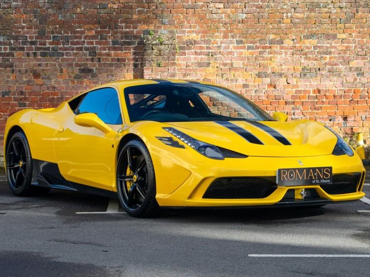 Romans of St Albans are delighted to present this stunning Giallo Triplo Strato Ferrari 458 Speciale with Racing Livery Stripe and Nero Alcantara With Yellow Stitching/ Carbon Fibre Interior. This is a huge investment opportunity and prices are only going up! This car has only every been serviced by Ferrari, and comes with a huge list of optional extras to include: Carbon Fibre Engine Cover, Carbon Fibre Front Bumper Air Intake, Carbon Fibre Rear Diffuser, Carbon Fibre Side Sills Fins, Giallo Triplo Strato Paint, Carbon Fibre Rear Aerodynamic Fins, Carbon Fibre Sill Cover, Front and Rear Parking Sensors, Rear Parking Camera, Fire Extinguisher, Scuderia Shields, Alcantara Upper Zone, Alcantara Lower Zone and much more! FINANCE AVAILABLE. A £299 admin fee applies to third party finance companies being used. FREE ON-SITE PARKING (ASK FOR DETAILS.)Romans after care package includes: Romans warranty for 6 months (12, 24 & 36 months are available), Main dealer cover available, Free breakdown cover for warranty duration, Full Romans service prior to delivery, 84 point vehicle inspection, 12 months MOT, Free Life time MOT when servicing with us (ask for details), Total value of package: £2000 - ALL INCLUSIVE IN THE PRICE. All of our clients have the added peace of mind that we have our own workshop facilities with free courtesy cars. Part Exchange very welcome, nationwide delivery also available. To avoid a wasted journey we highly recommend making an appointment, so call us now to get yours booked! Romans provide the highest of quality vehicles, and have at least 80 cars in stock at any one time. This means not all cars can be kept on site. This will also allow us to give you our fully undivided attention when viewing the vehicle you are interested in, WE ARE LOOKING TO BUY YOUR TOP SPEC, LOW MILEAGE, FULL SERVICE HISTORY PRESTIGE, SPORTS, AND 4X4 VEHICLES. GET MORE FOR YOUR VEHICLE BY EITHER SELLING TO US, OR ASKING US TO SELL YOUR VEHICLE FOR YOU