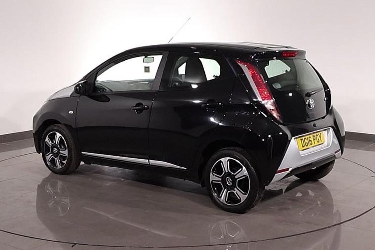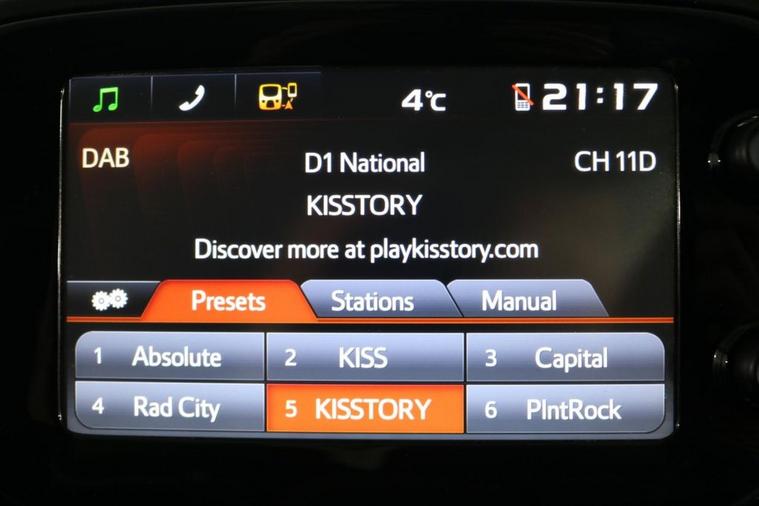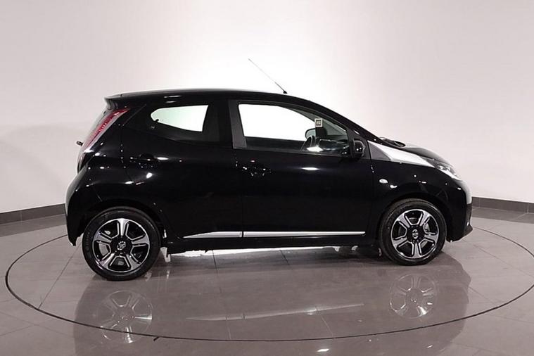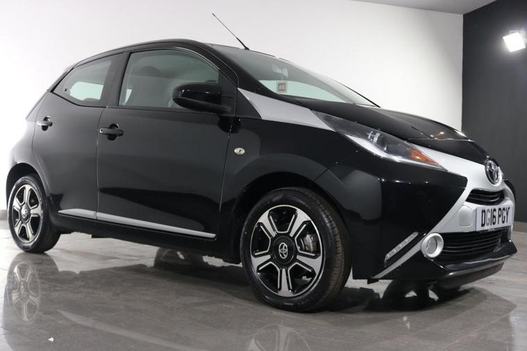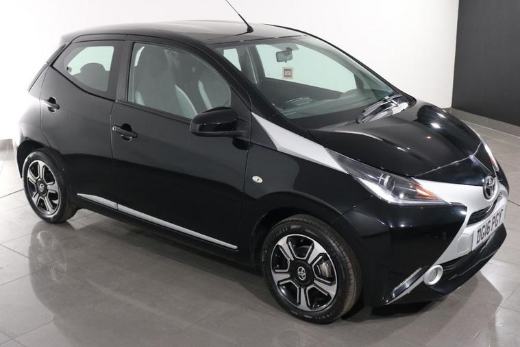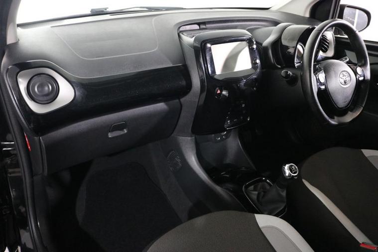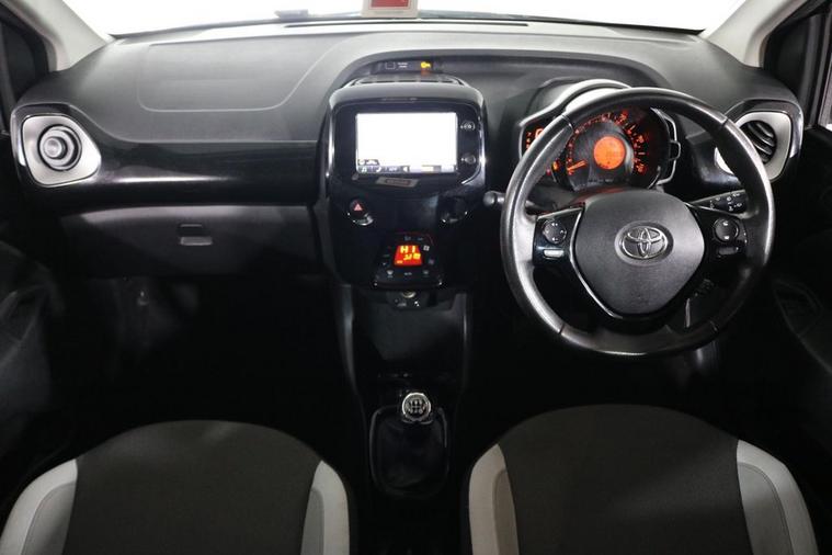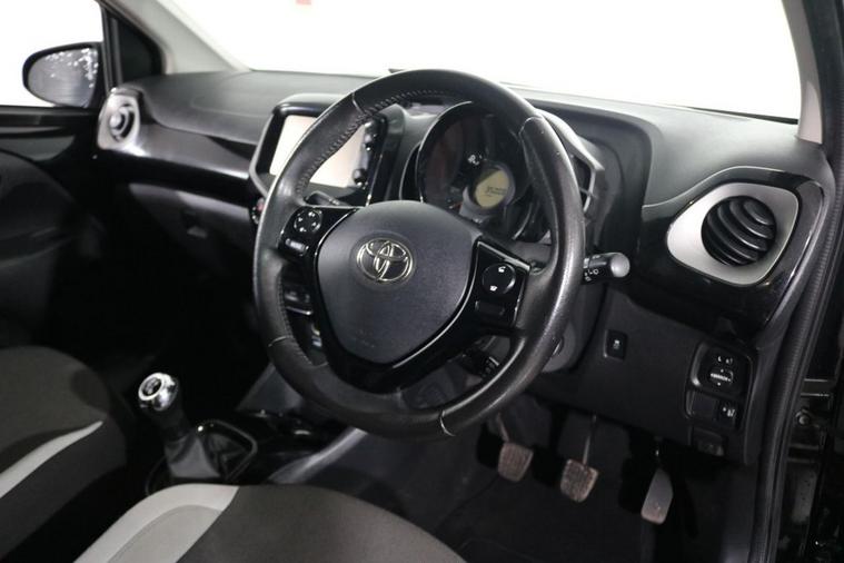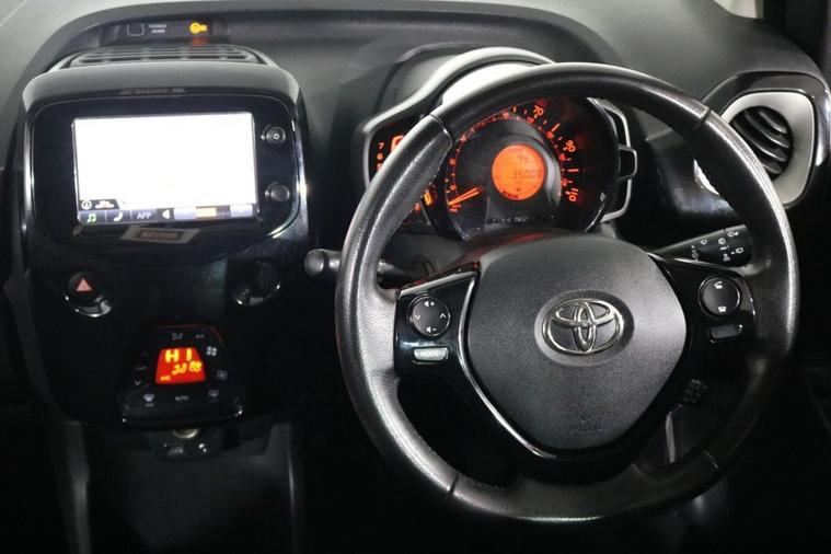 This desirable Toyota Aygo x-clusiv finished in Bold Black looks fantastic complemented by 15 inch Alloy Wheels and LED Running Lights. Enjoy economical motoring with JUST £20 ROAD TAX, up to 78 MPG and CHEAP INSURANCE. Find your way with integrated SATELLITE NAVIGATION with 7 inch TOUCHSCREEN Display. Keep connected to your Phones APPS through MIRROR LINK. Park in ease with REVERSE CAMERA. Listen to your music through DAB Digital Radio. Keep connected with BLUETOOTH Phone System with USB port and Music Streaming. Comfortable to drive with Auto CLIMATE CONTROLLED AIR CONDITIONING and Speed Limiting Function. Also equipped with ISOFIX seats, Auto Headlights, Multifunctional Steering Wheel, Immobiliser and Remote Door Locking with 2 x keys. Buy in confidence with JUST 2 OWNERS from new and SERVICE HISTORY with 7 x Documented Services.
