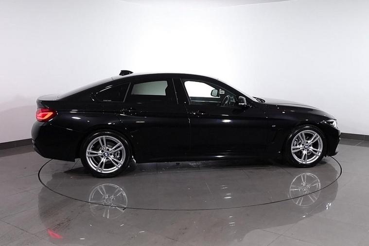 This desirable Automatic BMW 420i Gran Coupe M Sport finished in Black Sapphire looks fantastic complemented by 18 inch Alloy Wheels, Rear Privacy Glass, LED Headlights and Rear Privacy Glass. Find your way with integrated PROFESSIONAL SATELLITE NAVIGATION with Large LCD Display. Sit in luxury with FULL LEATHER UPHOLSTERY with HEATED FRONT SEATS. Park in ease with FRONT & REAR PARKING SENSORS. Keep connected with BLUETOOTH Phone System with USB port. Listen to your music through DAB Digital Radio. Comfortable to drive with Dual-Zone CLIMATE CONTROLLED AIR CONDITIONING and CRUISE CONTROL. Well equipped with Power-Operated Tailgate, Auto Headlights and Rain-Activated Wipers. Also fitted with ISOFIX seats, Multifunctional Steering Wheel, Switchable Ambient Lighting, Alarm and Remote Door Locking with 2 x keys. Buy in confidence with SERVICE HISTORY with 5 x Documented Services.