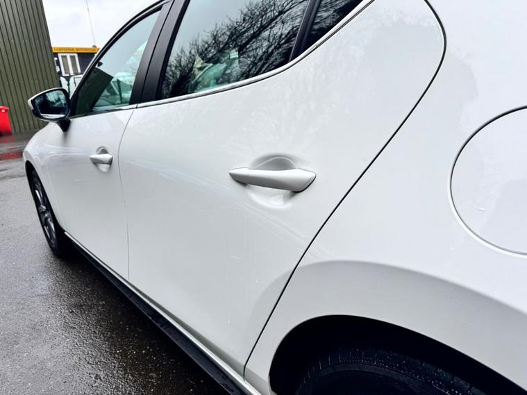 With a full service history and MOT valid until November 2026, this 2022 Mazda Mazda3 e-SKYACTIV-G SE-L presents a superb ownership proposition. This one owner vehicle boasts a 2.0L petrol engine and meets Euro 6 emissions standards. Inside, youll find manual air conditioning for your comfort, alongside seamless integration of your smartphone with Apple CarPlay and Android Auto. Parking is made easier with rear parking sensors, while the Mazda Radar Cruise Control adapts your speed to traffic, and Blind Spot Monitoring with Rear Cross Traffic Alert enhances your awareness of your surroundings. This Mazda3 stands out with its low insurance group and low CO2 emissions, indicating it is more economical to run than many similar vehicles. Its 0-60mph acceleration in 10.4 seconds offers a responsive driving experience. These factors combine to make this particular Mazda3 a compelling choice for those seeking a well maintained and feature rich compact car.