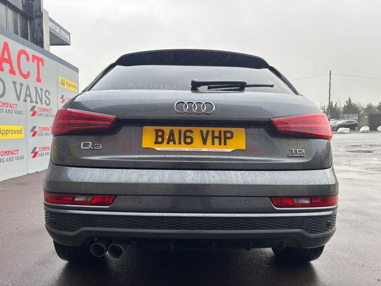 New into stock at Compact Cars & Vans Stunning Audi Q3 S Line We are delighted to offer this outstanding Audi Q3 S Line, presented in exceptional condition both inside and out. This 2016 (16 plate) model has covered just under 68, 100 miles and has been very well maintained. Powered by a reliable 2.0 litre diesel engine, paired with a smooth 6-speed manual gearbox, this Q3 delivers an excellent balance of performance and efficiency. The S Line model offers a spacious and comfortable interior with five generously sized seats, ample legroom for all passengers, and ISOFIX points ideal for travelling with children. This vehicle comes with a fantastic range of features including: Parking sensors, Satellite navigation, Speed limiter, Bluetooth connectivity, Electric tailgate, Steering wheel mounted controls And much more A superb example of a stylish, practical and well-equipped SUV.