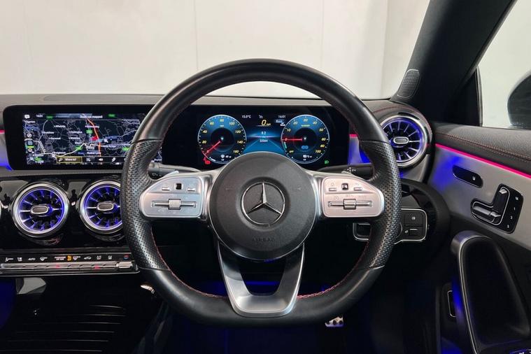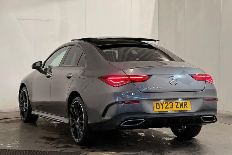 This 2023 Mercedes-Benz CLA250e AMG Line Night Edition (Premium Plus) has had only one owner from new, offering excellent provenance. This Euro 6 compliant model features a 1.3 litre petrol plug-in hybrid engine, combining efficiency with performance. The vehicle history check is clear, providing peace of mind. Notable features include a Memory Package for the seats, automatic headlamp activation, heated front seats for added comfort, and a panoramic opening sunroof that enhances the cabins sense of space. The Mercedes-Benz sound system, with an output of 100W from six speakers, ensures an enjoyable audio experience. The AMG Line Night Edition trim level, combined with the Premium Plus package, signifies a higher specification that sets this CLA apart. The inclusion of the panoramic roof and the advanced Memory Package for the seats are highlights that demonstrate a superior level of comfort and convenience compared to other vehicles in its class. This Mercedes-Benz CLA250e offers a sophisticated driving experience with its blend of advanced technology, luxurious appointments, and efficient hybrid power.