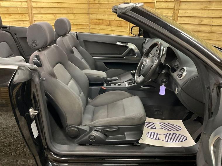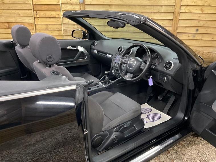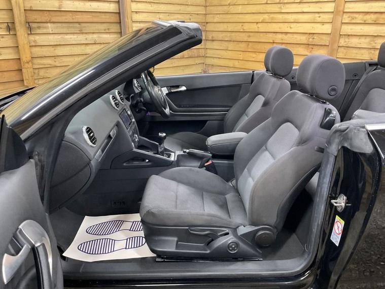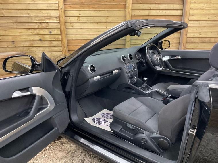 135, 434 MILES ONLY SHJUST TWO LOCAL LADY OWNERS FROM NEWGREAT OPPORTUNITY NOT TO BE MISSEDONLY £35/YR TAXTHIS VERY POPULAR HIGH SPEC AUDI A3 CONVERTIBLE IS FINISHED IN BEAUTIFUL BLACK METALLIC WITH GREY PATTERN INTERIORSPEC INCLUDES18 ALLOYS. 5 SPEED. CRUISE. S/S TECHNOLOGY. DUAL CLIMATE CONTROL. TRACTION. MULTI FUNCTION STEERING WHEEL. COLOUR SCREEN DISPLAY. RADIO C/ D. MEDIA. BLUETOOTH. SAT/NAV. ELEC FOLDING MIRRORS. REAR PARKING SENS. POWERED SOFT TOP. WIND DEFLECTOR. OVER MATS. ETCEXCELLENT EXTERIOR & INTERIOR CONDITION CONSISTENT WITH AGE & MILEAGEDOES DRIVE REALLY WELLFULL DEALER FACILITIESFAMILY RUN BUSINESS