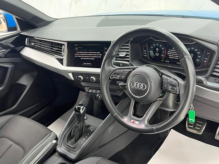 This 2019 Audi A1 TFSI S line offers peace of mind with a clear vehicle history check and a full 12 months MOT provided on purchase. This stylish hatchback is powered by an efficient 1.5 litre petrol engine, meeting Euro 6 emissions standards. It comes equipped with striking LED headlights and rear lights, featuring dynamic rear indicators for enhanced visibility. Inside, youll find convenient air conditioning, rear parking sensors to aid manoeuvring, and a light and rain sensor that automatically controls the headlights. The Bluetooth interface allows for seamless connectivity on the go. The Audi A1 TFSI S line stands out with its impressive performance, achieving 0-60mph in just 8.1 seconds, demonstrating its responsive acceleration. Its low CO2 emissions also indicate a more environmentally conscious choice compared to many other vehicles in its class. These combined attributes make this Audi A1 a compelling option for those seeking a blend of style, technology, and efficient driving.