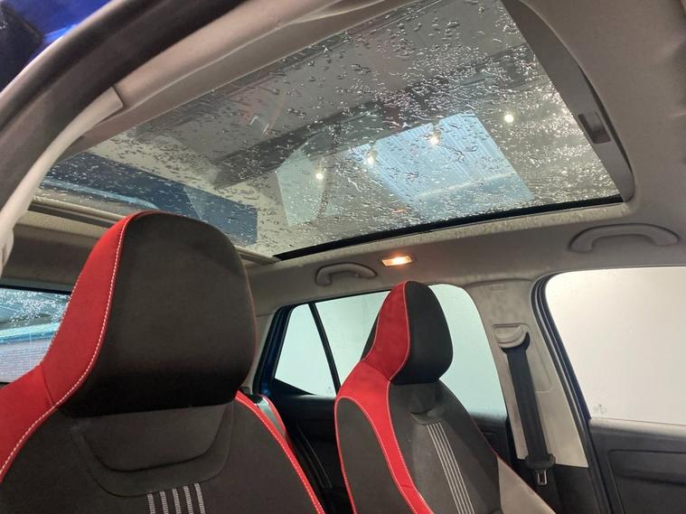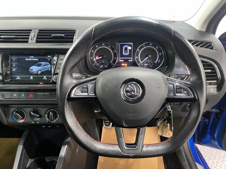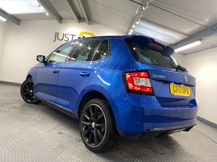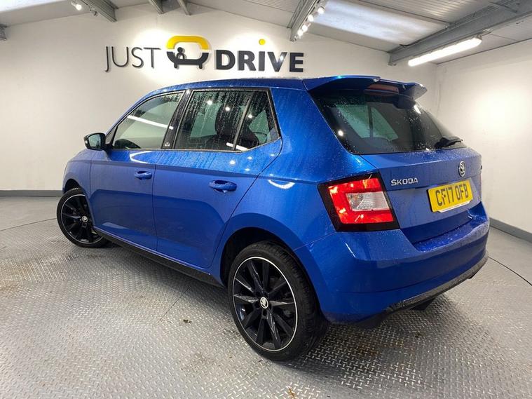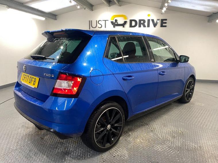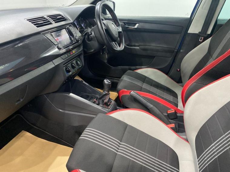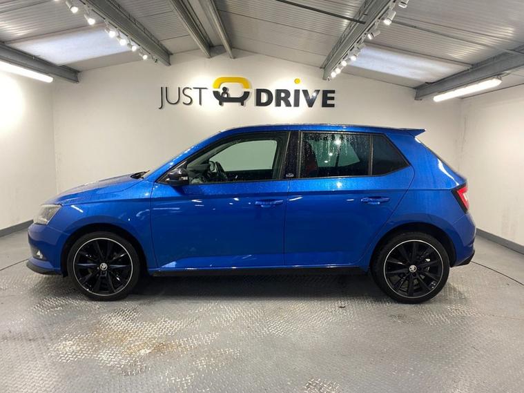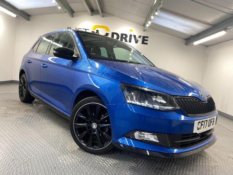The Fabia Monte Carlo hatchback is a stylish, practical and punchy supermini featuring sporty styling upgrades, comfortable bolstered seats and a 1.2-litre turbo engine that offers lively performance and good economy. It s great fun to drive with superb handling due to its sportier suspension setup. The Fabia looks fantastic in Race Blue metallic - a colour that really suits the car with 17 gloss black alloy wheels and Monte Carlo bodystyling completing the dynamic look. The spacious cabin is enhanced with a huge panoramic glass roof with interior sunblind making it a bright, well lit environment. The touchscreen media system is easy to operate and features Bluetooth for multiple devices, DAB radio and Park Pilot display when reversing. You also get air conditioning, ISOFIX anchor points and a leather multi-function sport steering wheel.
