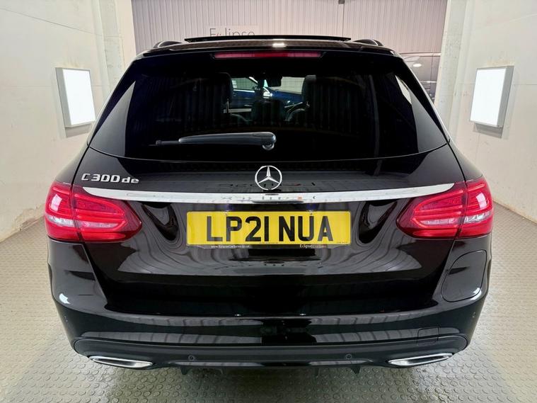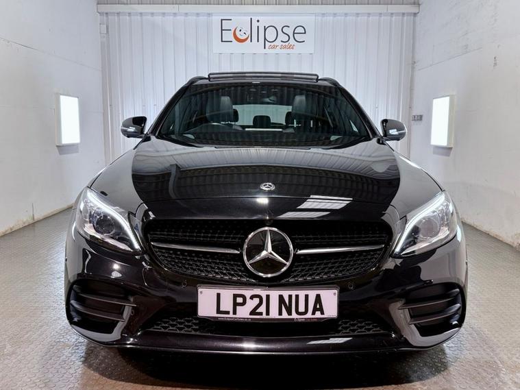 **THIS VEHICLE MAY BE AT OUR 150-CAR STORAGE FACILITY. PLEASE CALL AHEAD TO ARRANGE VIEWING AT OUR WINCHESTER SALES SITE** Mercedes-Benz C-Class 2.0 C300de 13.5kWh AMG Line Night Edition Estate first registered in May 2021 (21 Reg). Finished in Obsidian Black with a Black Leather Interior and 18 inch Alloy Wheels. Spec includes Sliding Panoramic Sunroof | 360 Degree Camera with Sensors | Rear View Parking Camera | Heated Memory Front Seats | Bermester Sound System | Dual Zone Climate Control | Drive Mode Individual Configuration | Cruise Control with Speed Limiter | Electric Folding Mirrors | Satellite Navigation | Ambient Lighting | DAB Radio | Bluetooth Connectivity | Powered Tailgate. Serviced at 35373 Miles.
