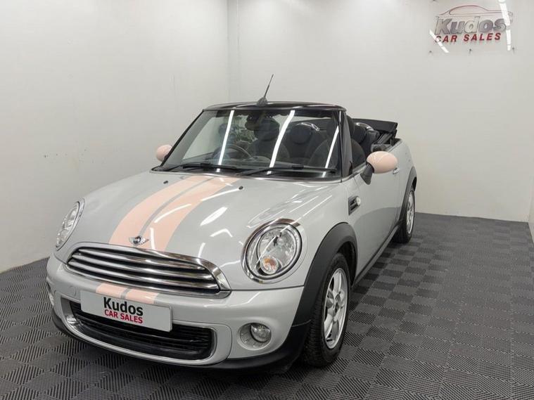 2013 MINI CONVERTIBLE 1.6 ONE 2dr - HEAD TURNING CAR CAR FINISHED IN WHITE SILVER WITH PASTEL PINK DETAIL. **OVER £3000 OF FACTORY EXTRAS** 6 MONTHS WARRANTY INCLUDED. EACH VEHICLE COMES WITH A FREE HPI CLEAR REPORT AND 1 YEAR AA BREAKDOWN COVER. SERVICE HISTORY AND LAST SERVICED @ 84000 MILES. RECENTLY HAD NEW CLUTCH. MOT UNTIL 09/02/2027. 84000 MILES. ***GREAT SPEC*** FULLY ELECTRIC ROOF, REAR PARKING SENSORS, AIR CON, CLIMATE CONTROL, DAB RADIO, BLUETOOTH, AUTO LIGHTS, ELEC MIRRORS AND WINDOWS, 6 SPEED, AUX/USB, UNMARKED ALLOY WHEELS. NON SMOKER, FINANCE PACKAGES - With a number of lenders on board i am able to offer Finance to suit individual circumstances, including Sub Prime. All CARS ARE HPI CHECKED AND CLEAR. WARRANTY - At KUDOS CAR SALES every vehicle comes with a FREE 6 MONTH Warranty. Any repairs under warranty can be carried out at your local garage -Extended warranty available on request at extra cost. 2 KEYs. ***ALL PART EXCHANGES CONSIDERED***