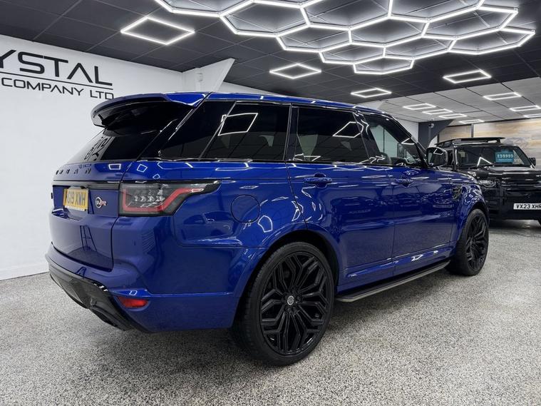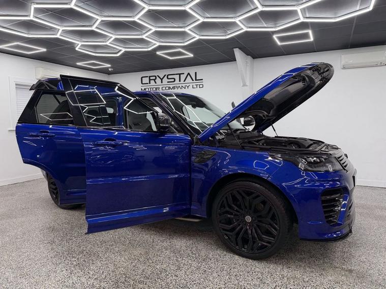 Crystal motor company are delighted to offer for sale this beautifully presented 2019 LAND ROVER RANGE ROVER SPORT 5.0 P575 V8 SVR SUV 5dr Petrol Auto 4WD Euro 6 (s/s) (575 ps) finished in ESTORIL BLUE. This car comes with TWO KEYS, THREE FORMER KEEPERS, SERVICE HISTORY, GHOST IMMOBILISER. This car is equipped with 23 URBAN ALLOY WHEELS, FRONT AND REAR PARKING SENSORS, REAR REVERSING CAMERA, ELECTRIC REAR TAILGATE, ELECTRIC FOLDING WING MIRRORS, BLIND SPOT ASSIST, MATRIX HEADLIGHTS, EXTERIOR CARBON FIBRE PACK, URBAN EXTERIOR BODYKIT, OPENING PANORAMIC ROOF, TWO TONE BLACK AND WHITE LEATHER INTERIOR, ELECTRIC FRONT SEATS, MEMORY FRONT SEATS, HEATED FRONT SEATS, ELECTRIC ADJUSTABLE STEERING WHEEL, PADDLE SHIFT, ADAPTIVE CRUISE CONTROL, HEATED STEERING WHEEL, VIRTUAL COCKPIT, MERIDIAN SOUND SYSTEM, AMBIENT LIGHTING (10 COLOUR CHOICE), ALCANTARA HEADLING, DAB RADIO, BLUETOOTH AUDIO, BLUETOOTH PHONE CONNECTION, SATNAV, APPLE CARPLAY, ANDROID AUTO. The car is 100% HPi clear. Part exchange and finance are available and all major credit and debit cards accepted. Crystal Motor Company Ltd Used Programme includes a full PDI inside and out, MOT, mileage certificate and a full inside and out valet. You can request a personalised video with attention given to any specifics you would like a better view of and we will be pleased to assist you. Likewise, we offer our customers a free collection service. Our journey began in 1996 with the aim to deliver the best possible customer experience, you will enjoy a completely hassle free approach, no pressure and great prices, values we stand by to this day. Looking to finance your next car? We have over 30 lenders on board to help each customer with their financial circumstance. Every vehicle benefits from a minimum of 3 months warranty with the option to extend to 6/12/24/36 months.