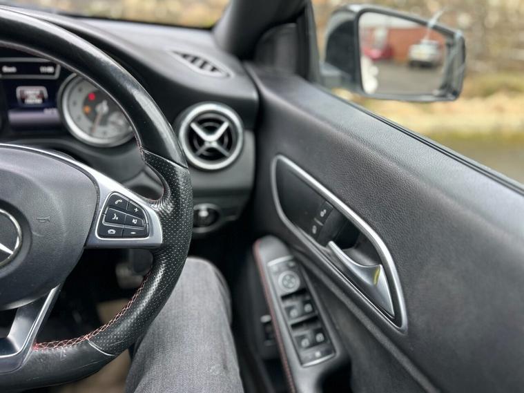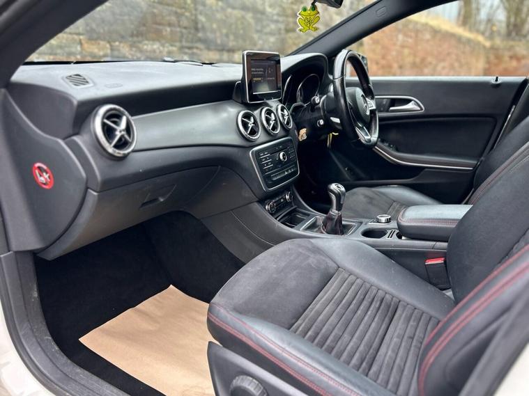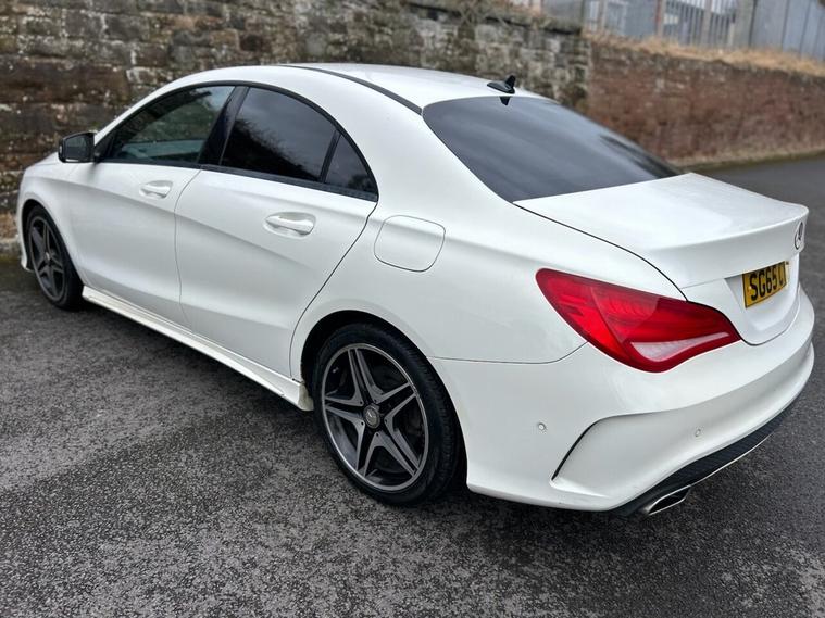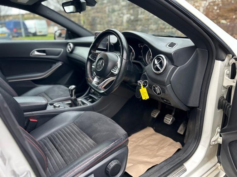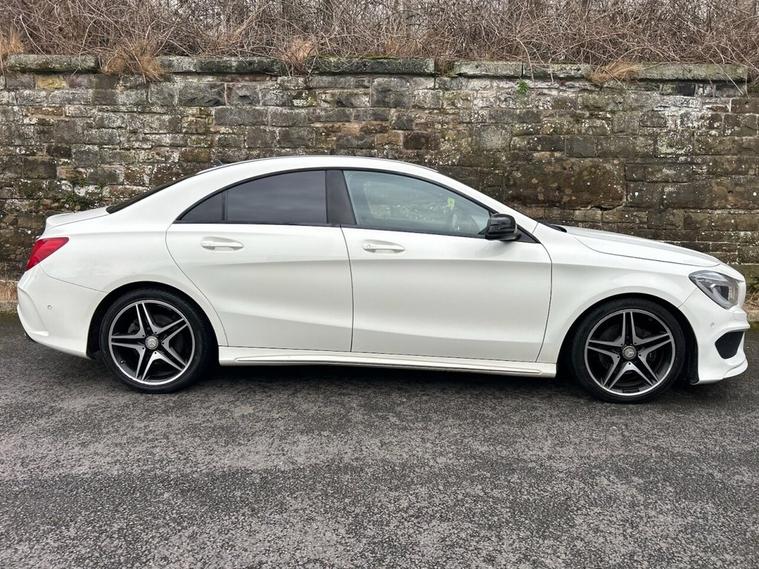 Stunning example of the Mercedes CLA180 AMG Sport with amazing optional extras: Night Package £995 Automatic climate control £530 Privacy glass £230 Black - Artico artificial leather/Dinamica microfibre £0 Cirrus White gloss A wonderful driving vehicle presented in Cirrus white with AMG alloy wheels and privacy glass