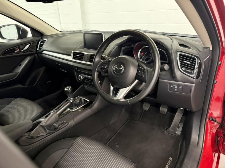 Finished in Soul Red with Black Cloth Interior. Features include 18 5 Twin Spoke Design Silver Alloy Wheels, Head Up Display, Audio Systems FM/AM Radio CD Player, 7 Touchscreen, Combined Bluetooth Phone & Audio Streaming System, Satellite Navigation System, Premium BOSE Centrepoint Surround System, Multimedia Commander, AUX, USB - iPod Connectivity, Front & Rear Parking Sensors, Reverse Camera, Dual Zone Climate Control with Air Conditioning, Automatic Levelling Bi-Xenon Headlights, Adaptive Front Lighting System, Rain Sensing Wipers, Cruise Control with Adjustable Speed Limiter, Heated Front Seats, Electrically Adjustable Heated & Folding Door Mirrors, Rear Privacy Glass, Keyless Entry, Leather Multi-Function Steering Wheel, Manual Transmission Plus Much More Standard Specification. This 3 Owner Mazda 3 has covered 91810 miles from new and is offered in good condition. The car comes complete with a service history consisting of the following :- 24/05/2017 at 10865 miles, 29/05/2018 at 22239 miles, 26/06/2019 at 33033 miles, 26/06/2020 at 37768 miles, 17/06/2021 at 44787 miles, 23/03/2022 at 50258 miles, 23/02/2023 at 65486 miles, 29/02/2024 at 76354 miles, 12/03/2025 at 85390 miles and 21/01/2026 at 91756 miles. PLEASE CALL OR E-MAIL FOR FURTHER DETAILS OR TO ARRANGE A PERSONALISED VIDEO OR VIEWING.