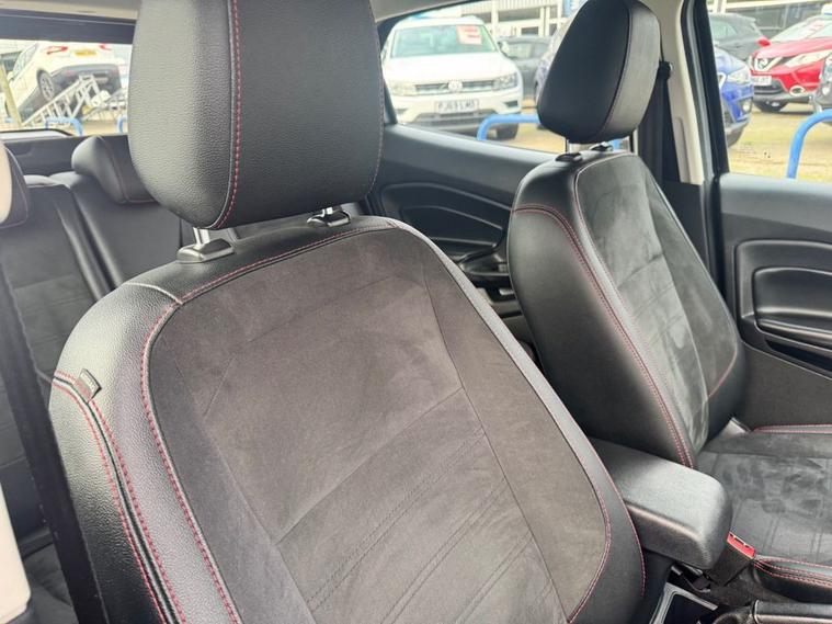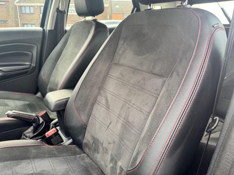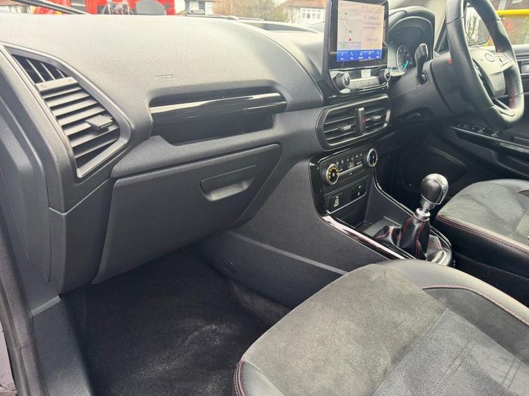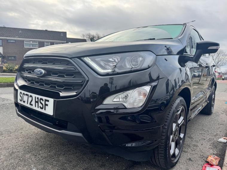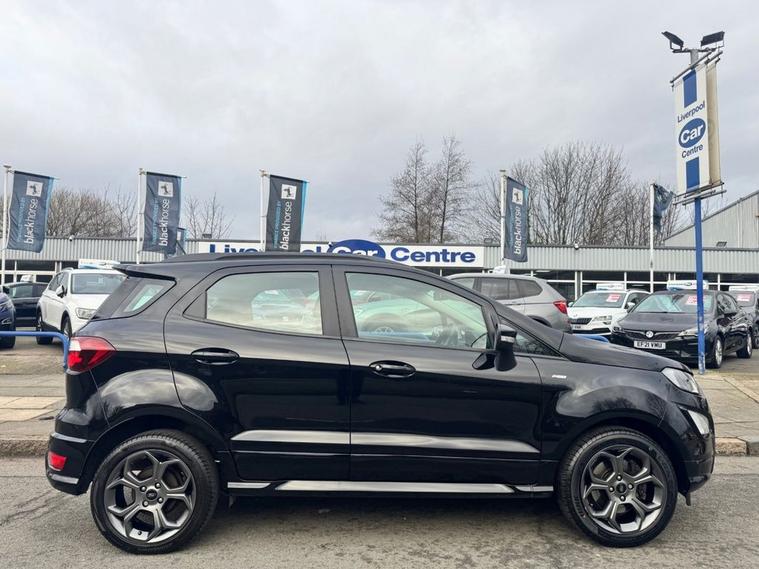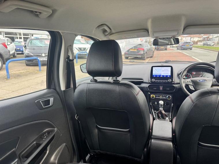 This 2022 Ford EcoSport ST-Line is the perfect blend of sporty aesthetics, modern tech, and city-ready practicality. Maintained to the highest standard with a full main dealer history, it is ready for its next owner. 2022 Ford EcoSport 1.0 EcoBoost 125 ST-Line 5dr Peace of Mind Package 12 Months MOT (included upon sale) Fresh Service (completed prior to delivery) Comprehensive Warranty included HPI Clear for total confidence Main Dealer Service History This vehicle has been meticulously maintained by the main dealer at the following intervals: 13, 124 Miles 23, 569 Miles 36, 859 Miles Key Specifications Exterior & Styling: ST-Line Body styling Kit: Unique front/rear bumpers and side skirts. 17 5-Spoke Dark Tarnish Alloy Wheels. Contrast Roof & Door Mirrors (Agate Black). Rear Privacy Glass and Black-finish Roof Rails. LED Daytime Running Lights and Front Fog Lights. Interior & Comfort: ST-Line Interior: Partial Sensico/Neosuede seats with signature Red Stitching. Sports Pedals and Flat-bottomed Leather Steering Wheel. Quick clear Heated Windscreen (perfect for frosty mornings). Electronic Auto Temperature Control (EATC). Ambient Lighting to set the mood. Technology & Safety: 8 Touchscreen with SYNC 3 Navigation. Apple CarPlay & Android Auto integration. Rear-View Camera with Rear Parking Sensors. Cruise Control with Adjustable Speed Limiter. Pre-Collision Assist and Traffic Sign Recognition. ?Ready to See More Dont miss out on this stunning ST-Line. We offer a Personalised Video Walkaround sent directly to your phone so you can see every detail from the comfort of your home. Location: Liverpool Car Centre Call Today: 01512972917