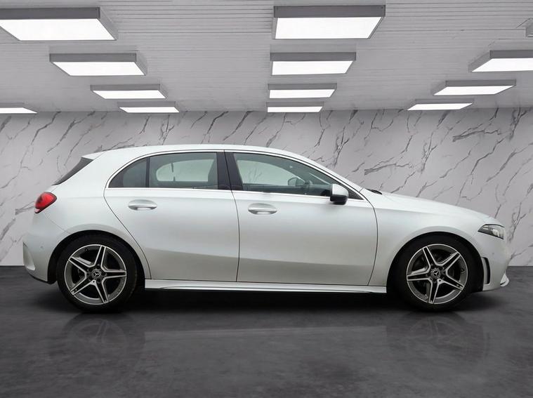 This 2019 Mercedes Benz A Class A180 AMG Line Executive boasts a clear vehicle history, offering you peace of mind. Powered by a 1.3 litre petrol engine and meeting Euro 6 emissions standards, this model is presented in the sporty AMG Line trim. Inside, youll find a leather trimmed steering wheel with a flattened bottom and perforated grip areas, complemented by THERMOTRONIC luxury automatic climate control for a comfortable cabin environment. Experience impressive performance with a 0-60mph acceleration time of just 9.2 seconds, demonstrating its responsiveness. The LED High Performance Headlamps ensure excellent visibility, while the 180 degree reversing camera with parking guidelines makes manoeuvring easier. Connectivity is enhanced with dual Bluetooth interface and two USB Type C ports. This A Class also offers generous boot space, making it a practical choice for everyday use and longer journeys, setting it apart from other vehicles in its class.