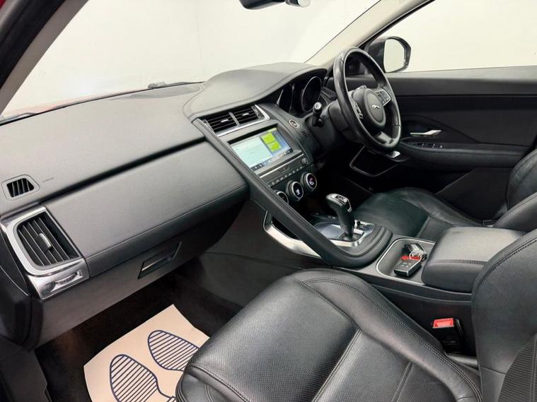 2018 JAGUAR E-PACE 2.0d S D150 AWD 5dr Automatic - **OVER £4000 OF FACTORY FITTED LUXURY EXTRAS**HEAD TURNING CAR, FINISHED IN STUNNING FIRENZE RED. NO DEPOSIT FINANCE AVAILABLE FROM ONLY £228 per mth. 6 MONTH WARRANTY INCLUDED. EACH VEHICLE COMES WITH A FREE HPI CLEAR REPORT AND AA BREAKDOWN COVER. 85000 MILES. FULL SERVICE HISTORY AND JUST HAD A SERVICE. MOT UNTIL 02/02/2027. SUCH A STUNNING CAR AND REALLY LOVELY TO DRIVE. **HUGE LUXURY SPEC** FULL BLACK LEATHER INTERIOR, ELECTRIC FRONT SEATS, HEATED FRONT SEATS, PANORAMIC GLASS ROOF, 10 TOUCH SCREEN, SAT NAV, REAR PARKING CAMERA, FRONT AND REAR PARKING SENSORS, CRUISE CONTROL, KEYLESS PUSH BUTTON START, ADJUSTABLE DRIVING MODES, TOUCH SCREEN DISPLAY, INDIVIDUAL CLIMATE CONTROL, LED LIGHTS, LED DAYTIME LIGHTS, AIRCON, BLUETOOTH, DAB RADIO, ELEC WINDOWS AND MIRRORS. UNMARKED 19 ALLOY WHEELS. FINANCE PACKAGES - With a number of lenders on board i am able to offer Finance to suit individual circumstances, including Sub Prime. All CARS ARE HPI CHECKED AND CLEAR. WARRANTY - At KUDOS CAR SALES every vehicle comes with a FREE 6 MONTH Warranty. Any repairs under warranty can be carried out at your local garage -Extended warranty available on request at extra cost. PREVIOUS NON SMOKER. 2 KEYS. ***ALL PART EXCHANGES CONSIDERED***