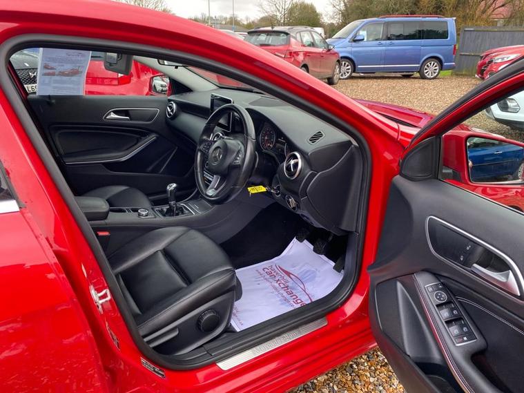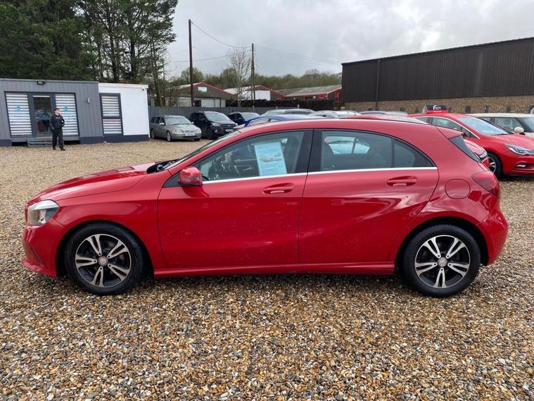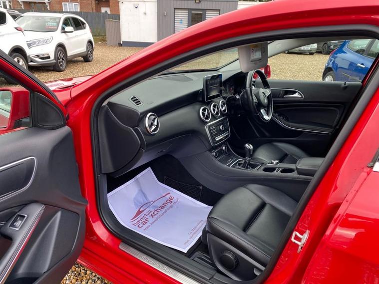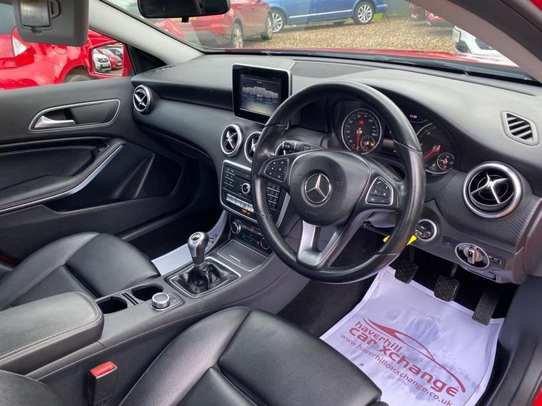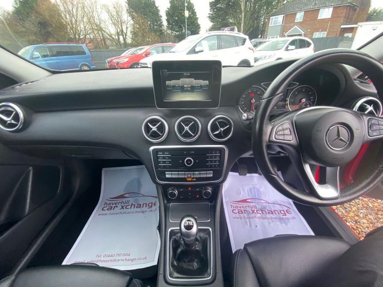 ONLY £20 A YEAR ROAD TAX+LONG MOT UNTIL 05.01.2027+7 INCH TABLET-STYLE COLOUR DISPLAY WHICH FEATURES SATELLITE NAVIGATION+RADIO-CD PLAYER-MP3 COMPATIBILITY+BLUETOOTH+E-CALL EMERGENCY CALL SYSTEM+AIR-CONDITIONING+BLACK LEATHER UPHOLSTERY+AUTOMATIC HALOGEN HEADLIGHTS+PARKING ASSISTANCE WITH REVERSING CAMERA 180 DEGREE VIEW+JUPITER RED PAINT+16 INCH ALLOY WHEELS. At Haverhill Car Xchange we would like to offer you our Mercdes-Benz A-Class SE Hatchback which has been finished in a Jupiter Red paint with luxurious Black Leather upholstery. Excellent Specification Includes a 7 Inch Tablet Style Colour Display Screen which features Satellite Navigation System, Mercedes Me Connect, Media Interface, Radio-CD-MP3 Compatibility, Bluetooth, X 2 USB Ports in Centre Console, Telephone Keypad, E-Call Emergency Call System, THERMATIC Air-Conditioning, Shift Indicator, X4 Electric Windows, Body Coloured Bumpers/Door Handles/Rear Roof Spoiler and Door Mirrors with Integrated Side Indicators, Door Sill Panels-Mercedes Benz Lettering, Body Coloured Side Skirts, Chrome Beltline, Automatic Halogen Headlight Activation, Integrated LED Daytime Running Lights, LED High Level Third Break Light, LED Partial Tail Lights, Parking Assistance with 180 Degree Parking Camera, 3-Spoke Leather Trimmed Multifunction Steering Wheel, Heated Rear Window, Electric Parking Break, 16 Inch Alloy Wheels, Speed Sensitive Power Assisted Steering, ABS Breaking System, Automatic Child Seat Recognition Sensor, Airbags, Alarm, Immobiliser, Remote Central Locking and ISOFIX Anchorage Points for Child Seats.