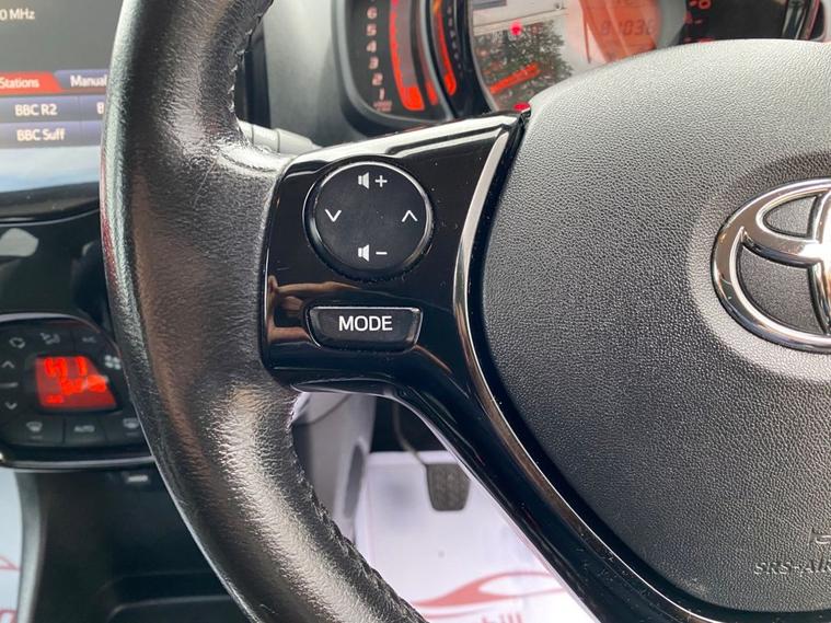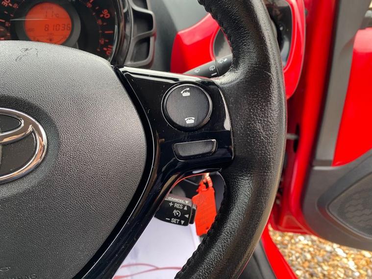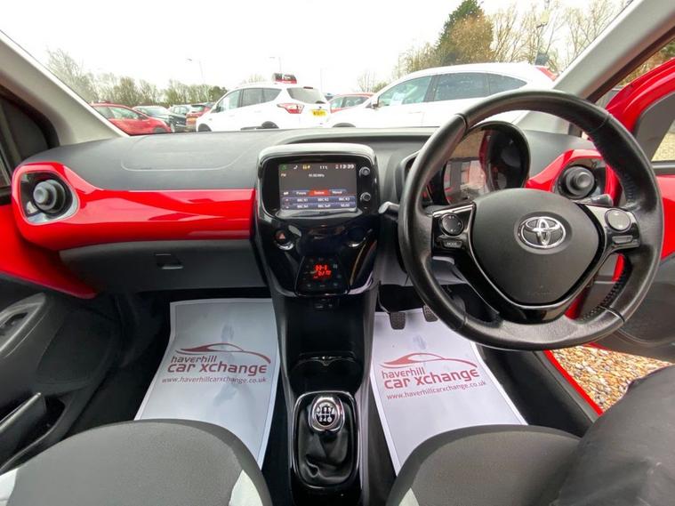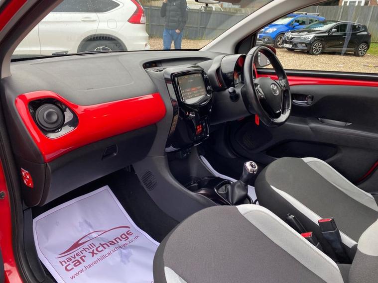 THIS VEHICLE WILL COME WITH A NEW 12 MONTH MOT+SERVICE HISTORY+X-TOUCH TOUCHSCREEN-DAB DIGITAL RADIO+AIR-CONDITIONING+DUSK SENSING HEADLIGHTS+REVERSE CAMERA+RED POP PAINT+15 INCH ALLOY WHEELS. At Haverhill Car Xchange we would like to offer you our Toyota Aygo VVT-i X-Style Hatchback which has been finished in a Red Pop paint, Grey Accents and Dark-Grey-Light Grey Gleam Fabric upholstery. Specification Includes X-Touch 7 Inch Touchscreen, DAB Digital Radio, USB Connection, 12 Volt Power Socket, Automatic Air-Conditioning, Electric Front Windows, Body Coloured Bumpers/Door Handles and Door Mirrors, Leather Gear Shift, Dusk Sensing Headlights, LED Daytime Running Lights, Front Fog Lights, 3-Spoke Leather Multifunction Steering Wheel, Reversing Camera, Rear Privacy Glass , 15 Inch Alloy Wheels, Electric Power Assisted Steering, Hill Start Assist Control, ABS Breaking System, Airbags, Alarm, Immobiliser, Remote Central Locking and ISOFIX Anchorage Points for Child Seats.