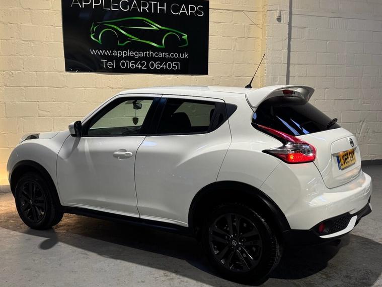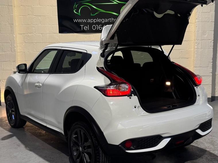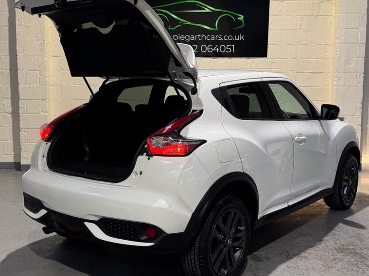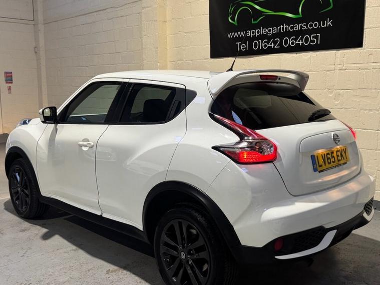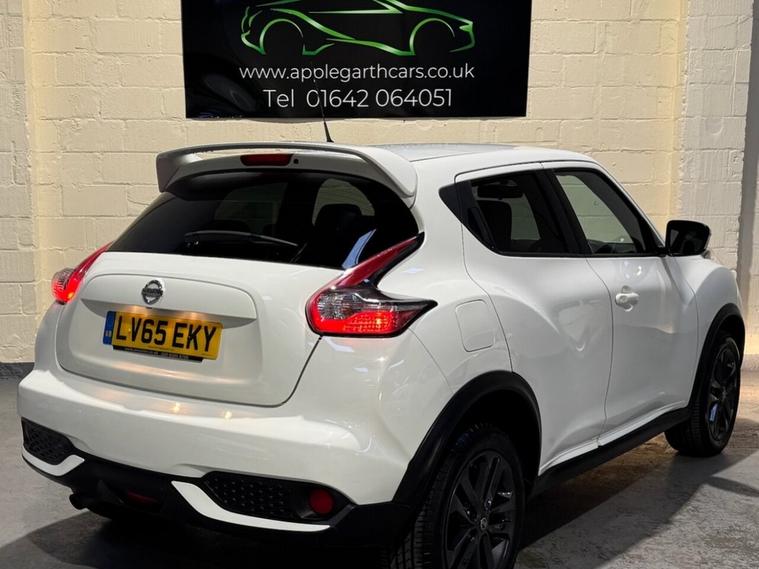 Presenting this 2015 (65) Nissan Juke 1.2 DIG-T Acenta Premium, registration LV65 EKY, finished in striking White with 54, 931 miles. A stylish, economical and well-specified compact SUV that blends sporty performance with everyday practicality. This example is powered by Nissans responsive 1.2 DIG-T turbocharged petrol engine, producing 115 PS, paired with a smooth 6-speed manual gearbox. It delivers lively acceleration while remaining impressively efficient, returning around 50 mpg (combined) with Euro 6 emissions compliance and Stop/Start technology, making it ULEZ-friendly and cost-effective to run. The Acenta Premium specification offers an excellent level of comfort, technology and convenience: Exterior Features: 17 Sport alloy wheels LED daytime running lights Front fog lights Electric folding and heated door mirrors Rear privacy glass Colour-coded door handles and mirrors Interior & Comfort: Climate control air conditioning Leather-trimmed steering wheel and gear knob Height-adjustable drivers seat 60/40 split-folding rear seats Push-button start with Intelligent Key Cruise control with speed limiter Front and rear electric windows Technology & Infotainment: NissanConnect 5.8 touchscreen infotainment system Satellite navigation DAB digital radio Bluetooth connectivity with audio streaming USB and AUX inputs Rear view camera with colour display Safety & Driver Assistance: ABS with EBD and Brake Assist ESP (Electronic Stability Programme) Traction control Tyre Pressure Monitoring System ISOFIX child seat anchor points Multiple airbags (front, side and curtain) High-strength safety body construction The Nissan Juke stands out with its distinctive coupe-inspired SUV styling, elevated driving position and compact dimensions, making it ideal for both city driving and motorway cruising. The turbocharged engine offers a great balance between performance and economy, while the generous specification ensures comfort and connectivity on every journey. With just 54, 931 miles, this well-maintained example represents excellent value for anyone looking for a practical, reliable and stylish SUV with low running costs and strong road presence. A fantastic opportunity to own a well-specified, Euro 6 compliant Nissan Juke that is ready to drive away today.