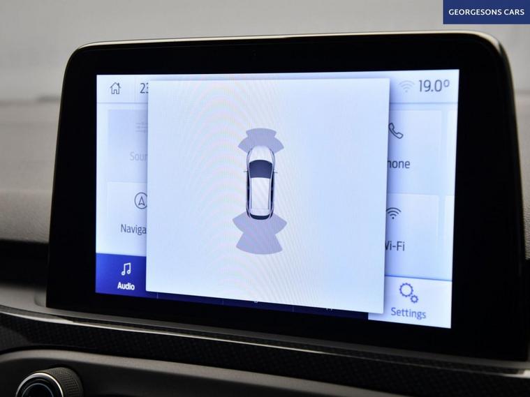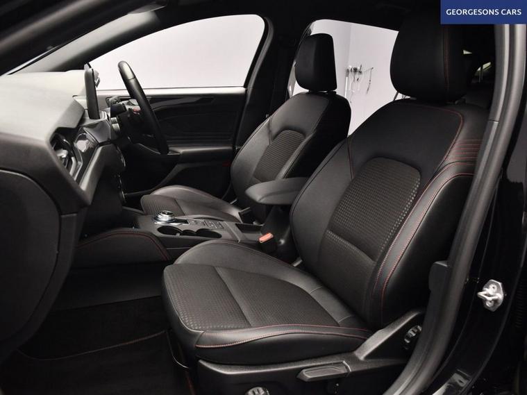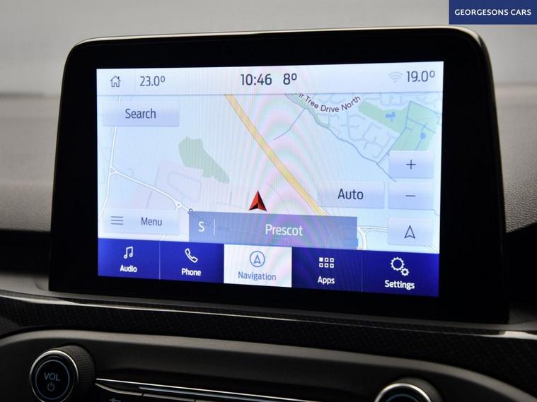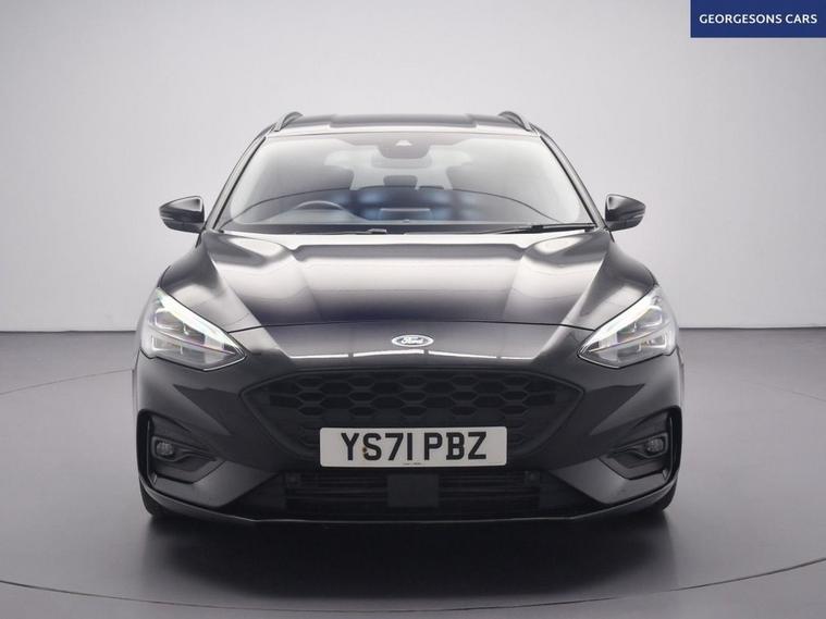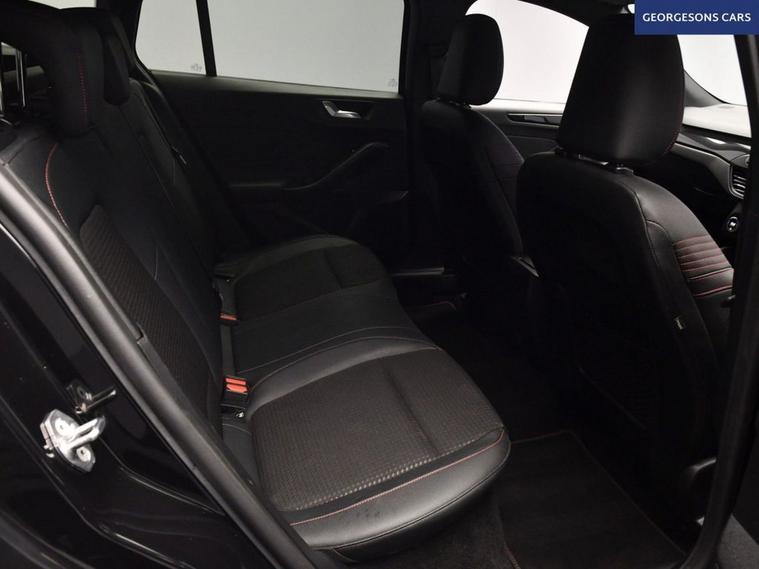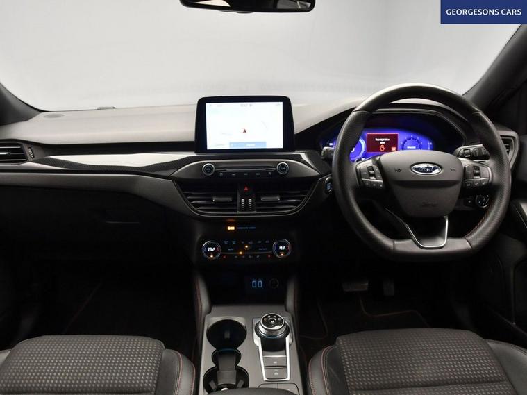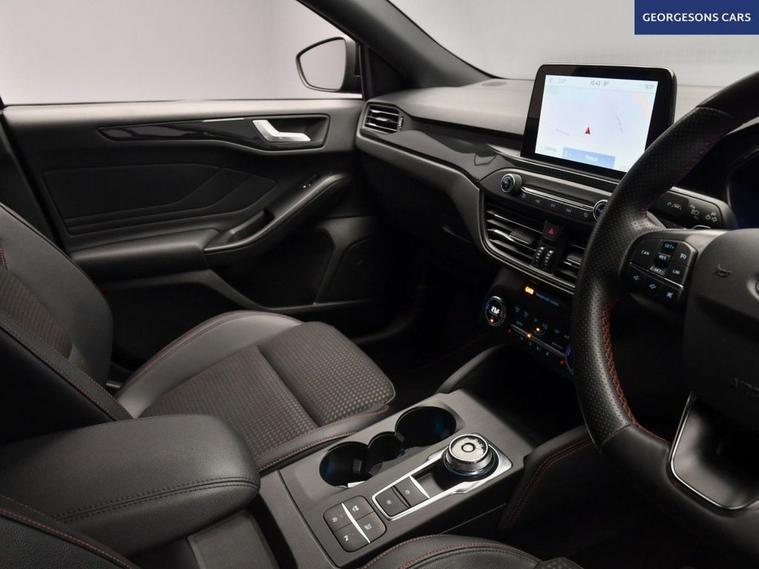 This Ford Focus 1.0T EcoBoost ST-Line X Estate is a petrol automatic estate powered by a 1.0-litre EcoBoost engine, offering responsive performance with excellent efficiency. The ST-Line X specification adds sporty styling along with a high level of comfort and technology, making it a practical yet dynamic family estate. It is equipped with satellite navigation, Apple CarPlay, Bluetooth and DAB radio for connectivity. Manoeuvring is assisted by parking sensors. Comfort features include dual-zone climate control, heated seats, a heated windscreen and a heated steering wheel. Driver features include paddle-shift gears and cruise control with speed limiter, making this a well-specified and versatile estate.