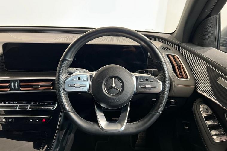 This 2022 Mercedes-Benz EQC 400 AMG Line boasts an exceptionally low mileage of just 25, 264 miles, having been owned by only one careful keeper. As a fully electric vehicle with four wheel drive, it offers an impressive battery capacity of 88 kWh, providing a maximum range of 245 miles when new. Charging at home with a 7kW charger takes approximately 12 hours and 13 minutes, while rapid public charging can replenish the battery from empty to 80% in as little as 45 minutes. This particular EQC comes with an MOT valid until November 2026 and has a clear vehicle history check, ensuring peace of mind for its next owner. The EQC 400 AMG Line is equipped with a suite of desirable features that enhance the driving experience. The Parking Package, complete with Parking Assist PARKTRONIC and a rear camera, makes manoeuvring effortless, supported by front and rear sensors. Enjoy comfort on every journey with heated front seats, while the MULTIBEAM LED headlights provide superior visibility. Keyless entry and start are facilitated by the KEYLESS-GO Comfort Package, and the Mercedes-Benz Sound System delivers an immersive audio experience. Its performance is equally compelling, with a swift 0-60mph acceleration in just 5.1 seconds, demonstrating its dynamic capability. Furthermore, the generous boot space ensures practicality for all your needs, setting it apart from other vehicles in its class.